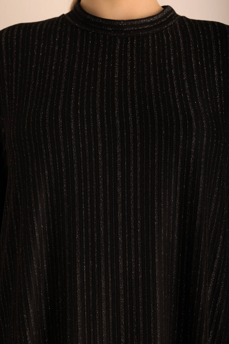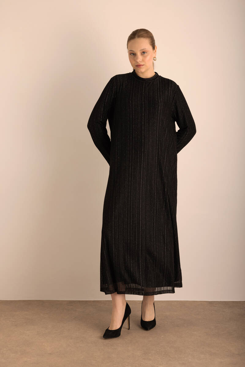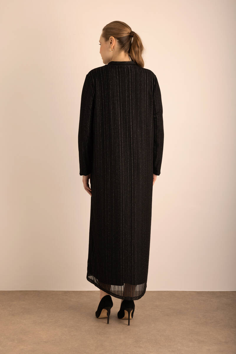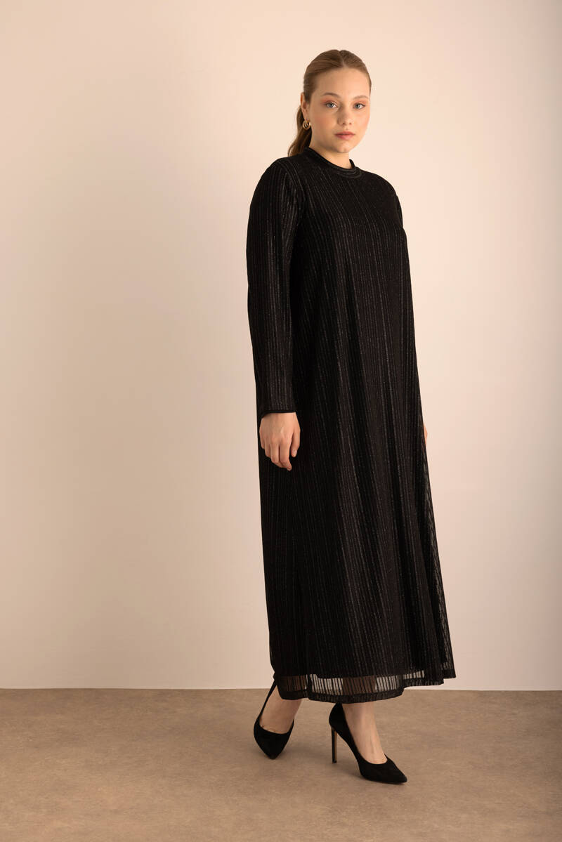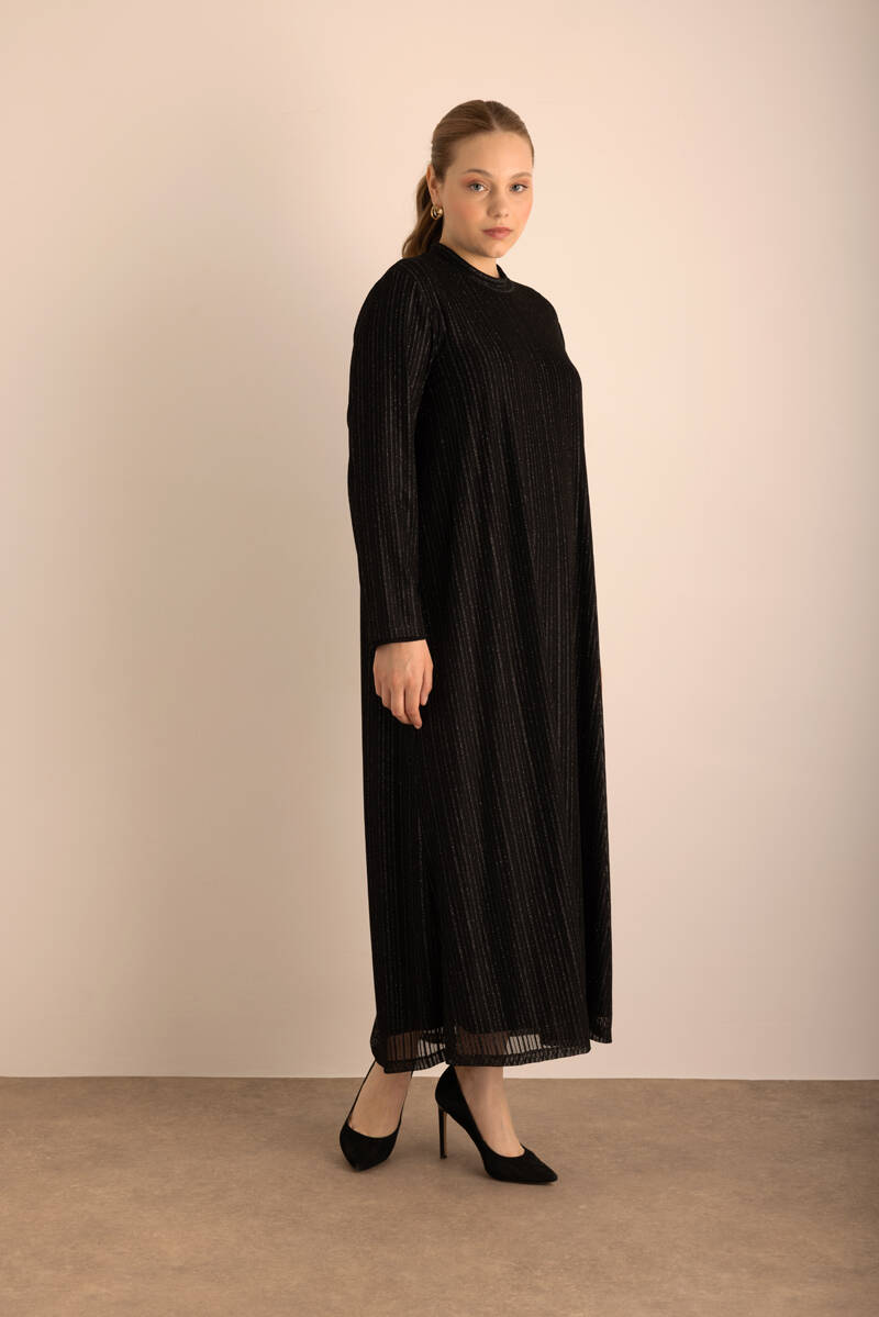 Siyah Seyyar Çiçek Detaylı Varak Dokuma Elbise