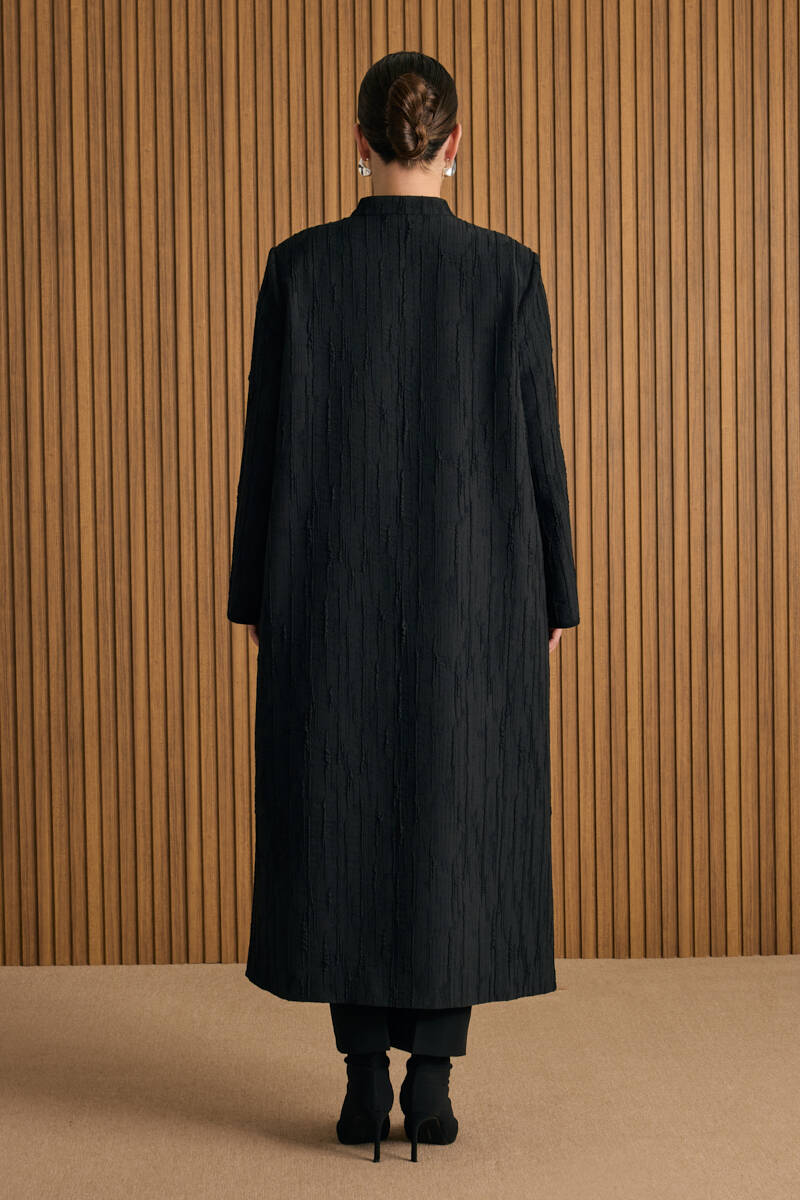 Siyah Özel Dokuma Kumaştan Viscon İçerikli Pardösü