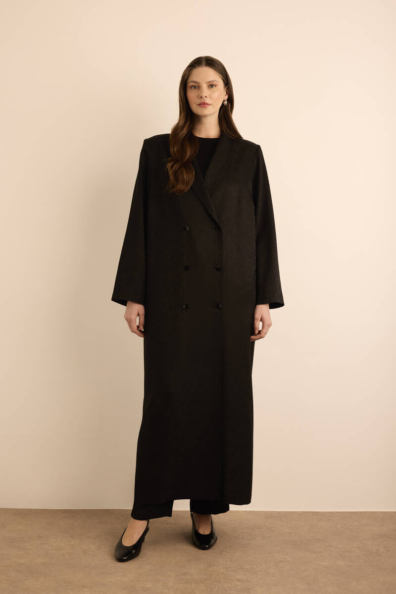 Siyah Kolları Detaylı Fermuarlı Pardösü