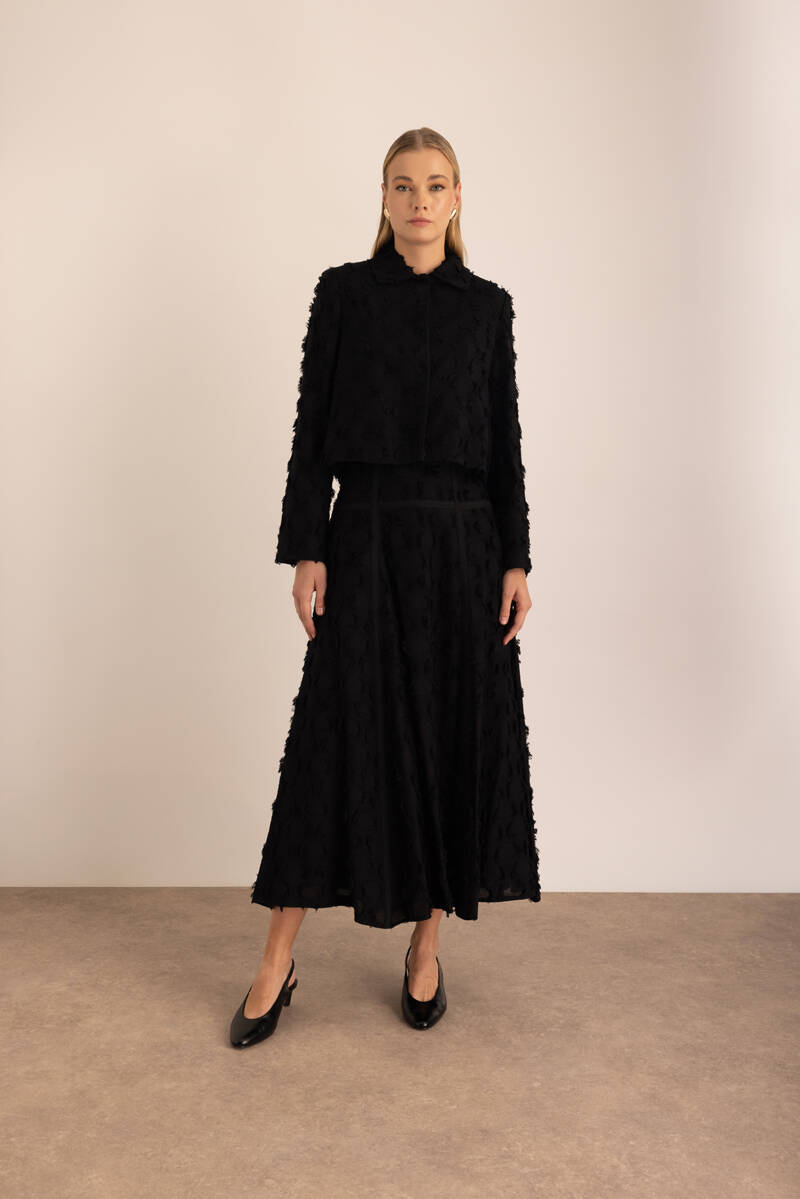 Siyah Püskül Kumaş Detaylı Kutu Ceket