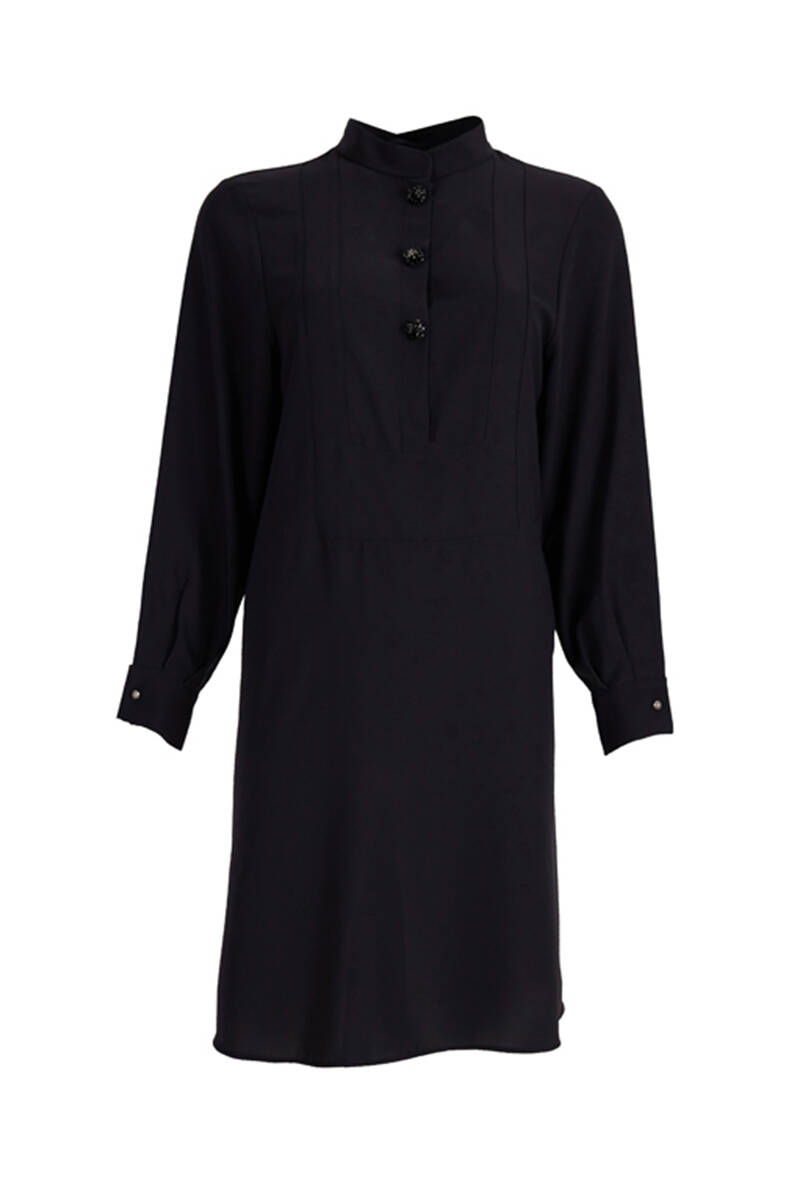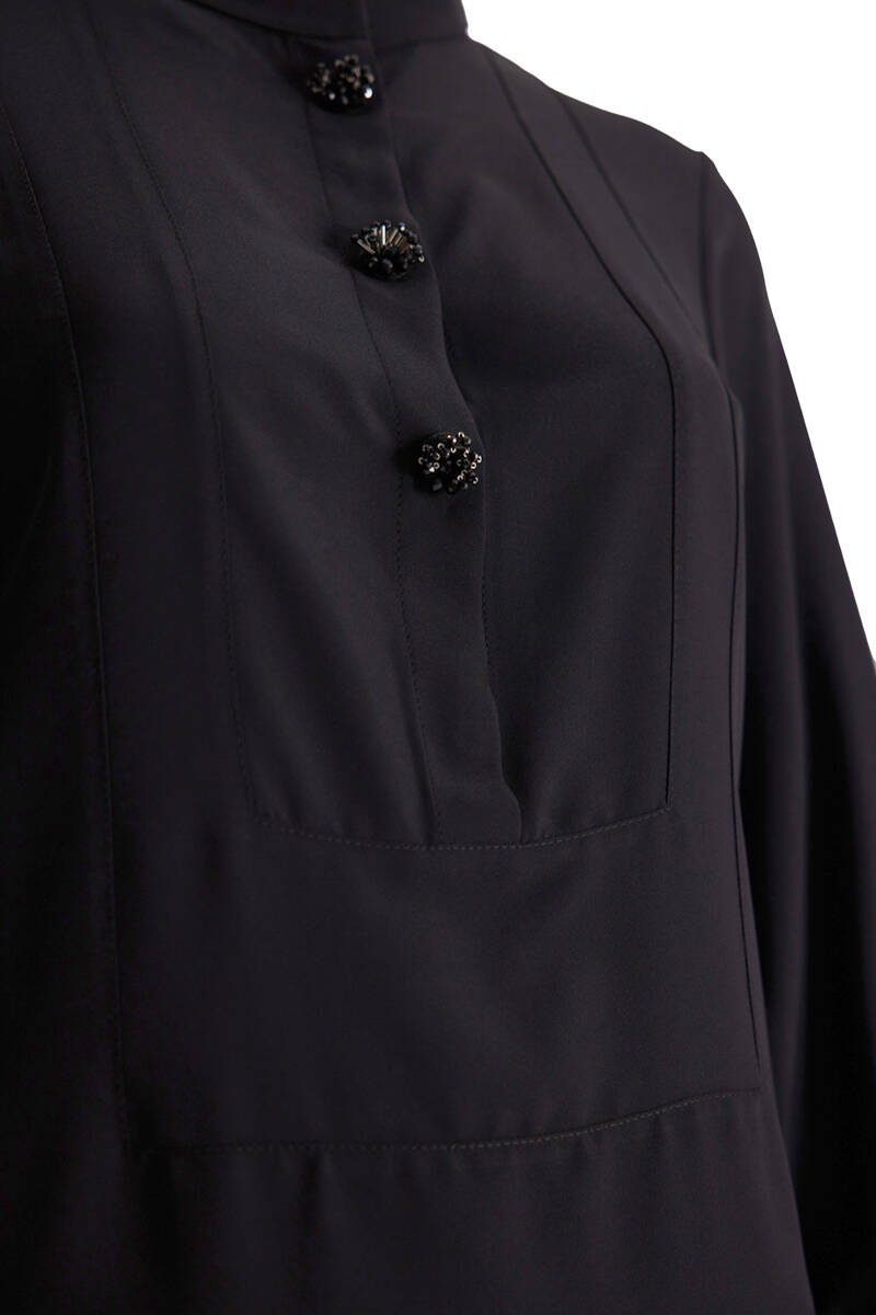 İndigo Dikiş Detaylı Hakim Yaka Tunik