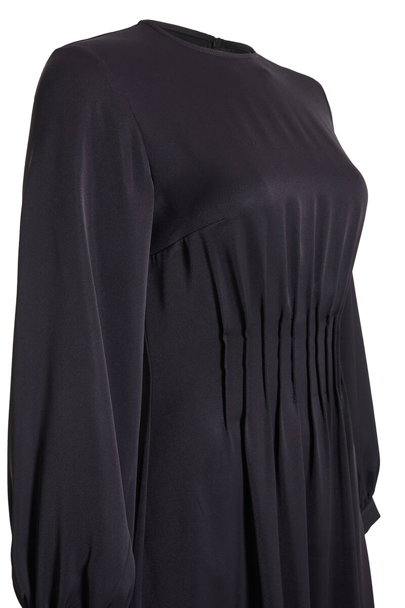 Siyah Doğal Dokulu Kumaş Gömlek Elbise