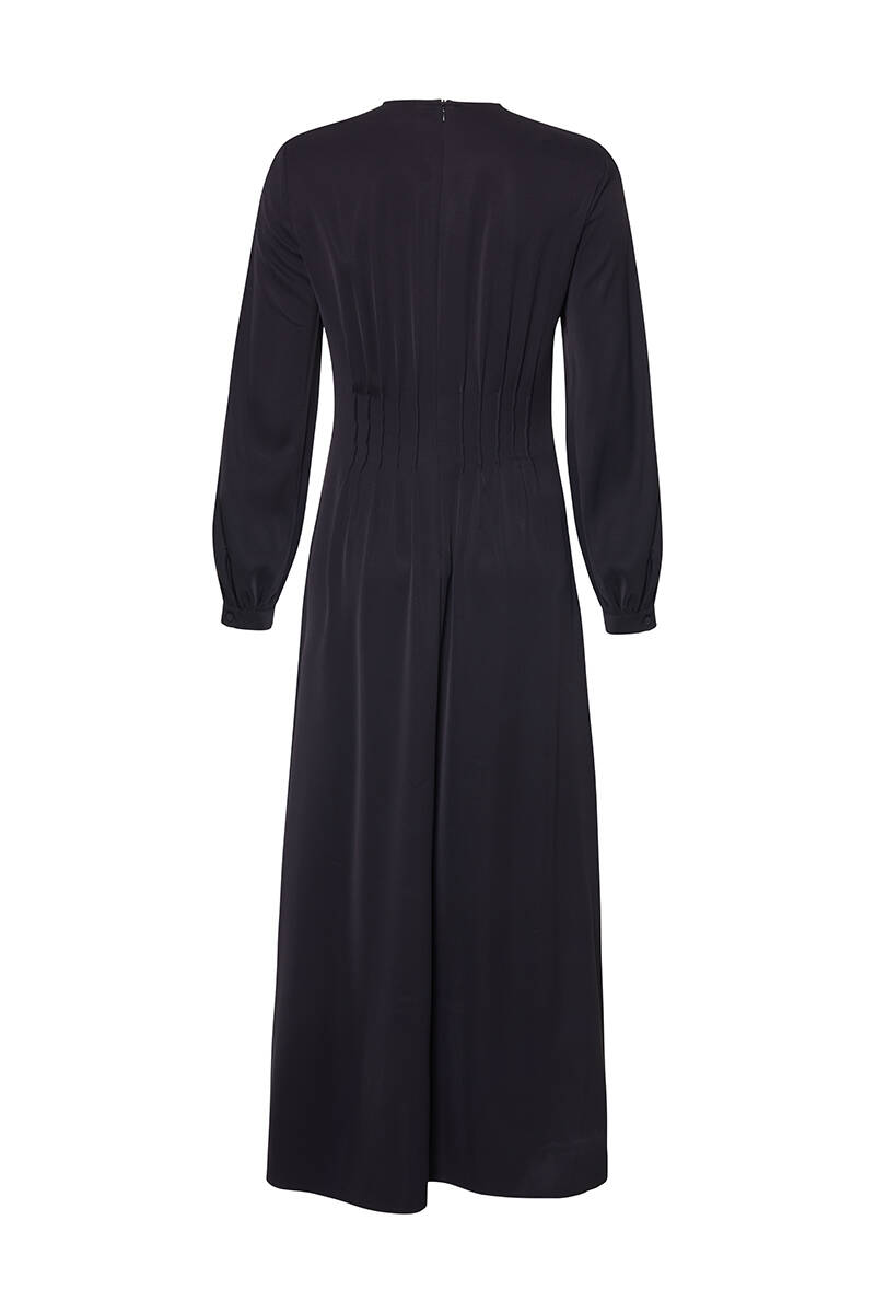 Lacivert Üst Kısmı Volan Parça Hareketli Dökümlü Elbise
