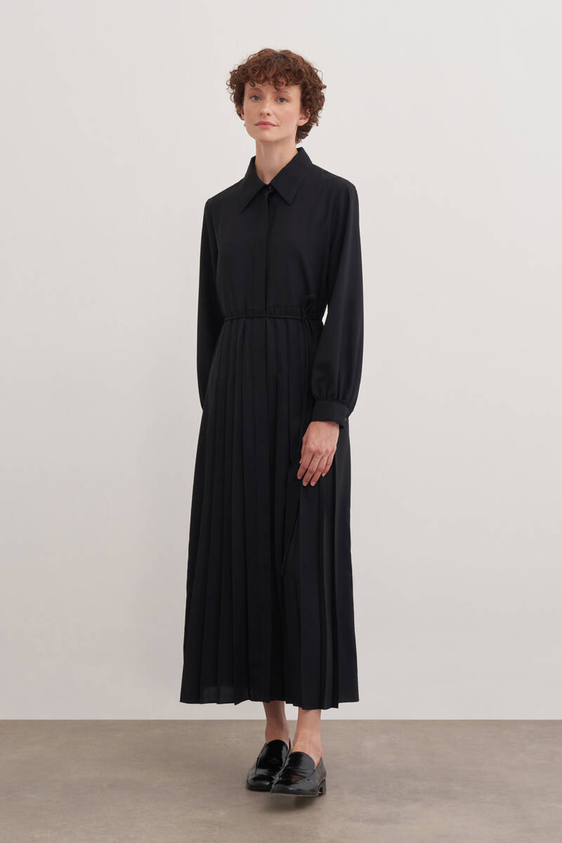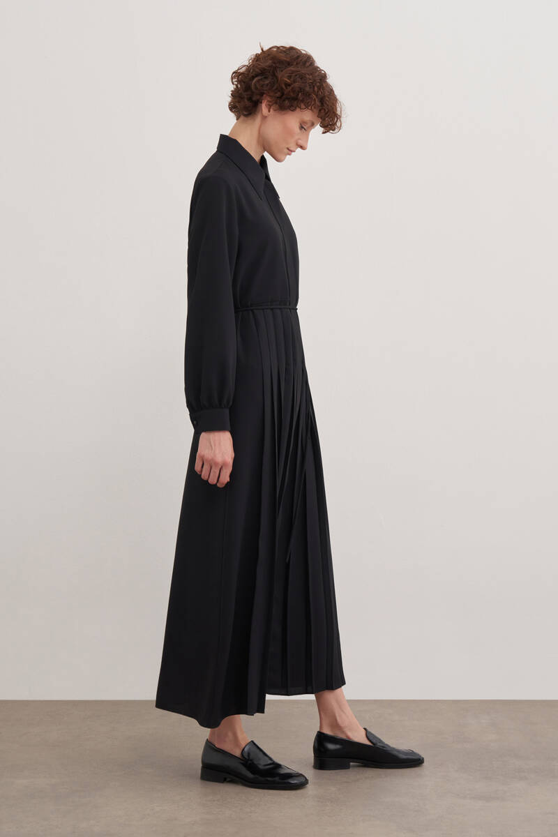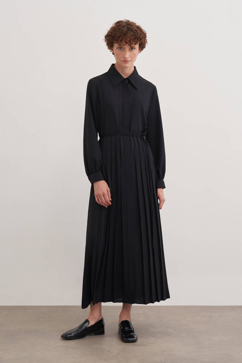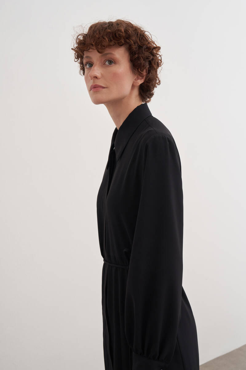Siyah Doğal Dokulu Kumaş Gömlek Elbise