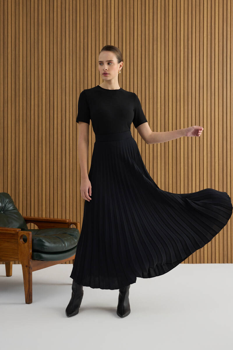 Siyah Örme Pantolon Etek