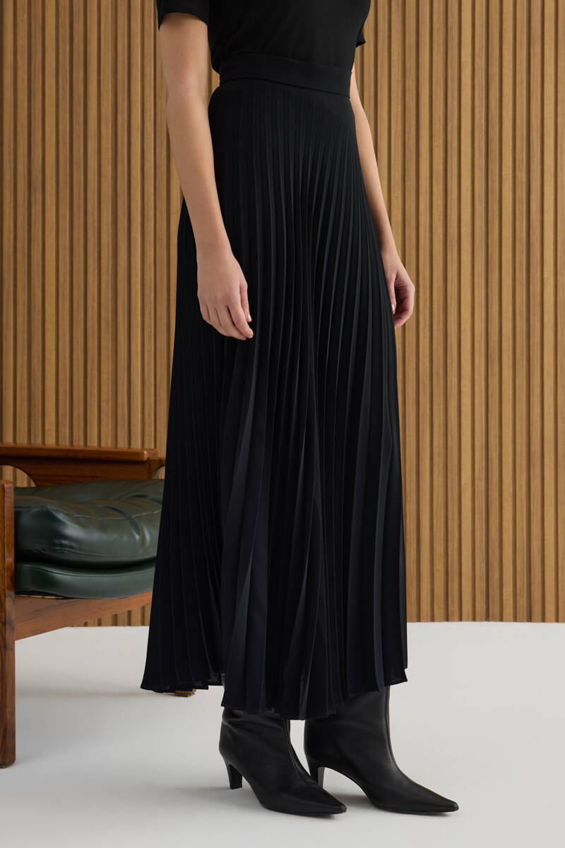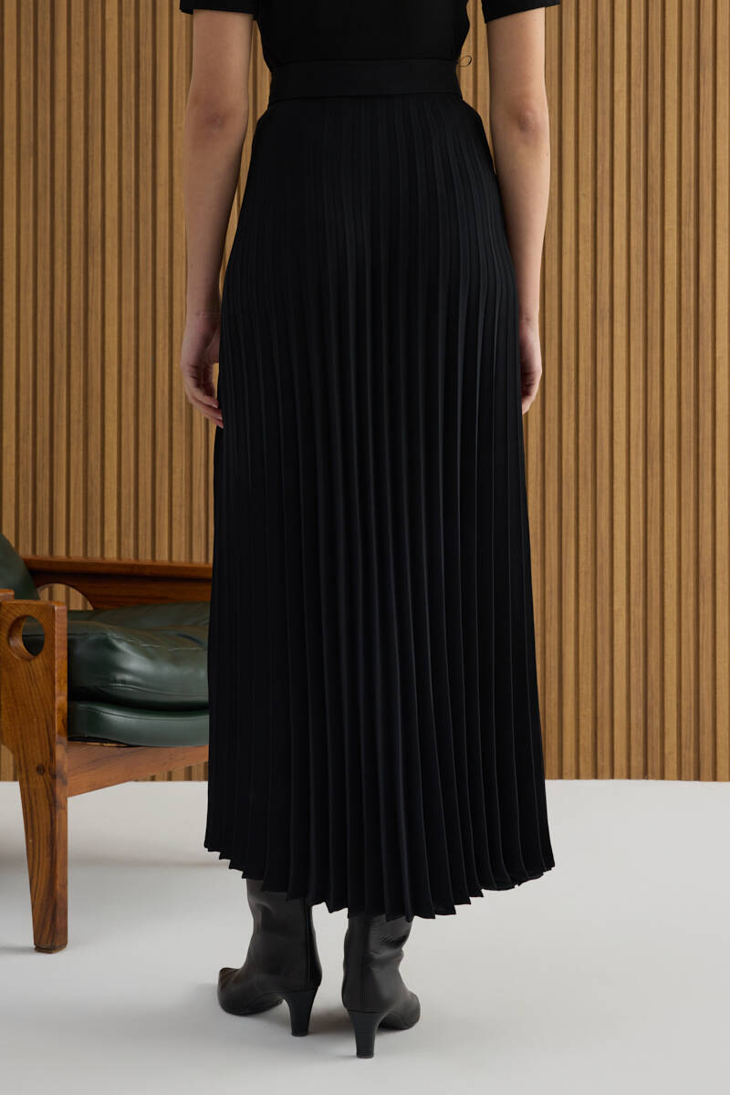 Siyah Kloş Yırtmaçllı Keten Etek