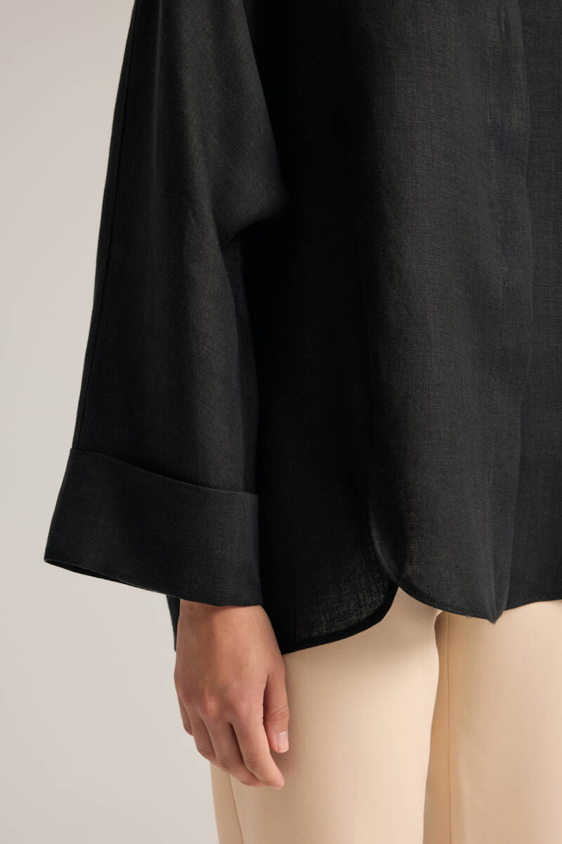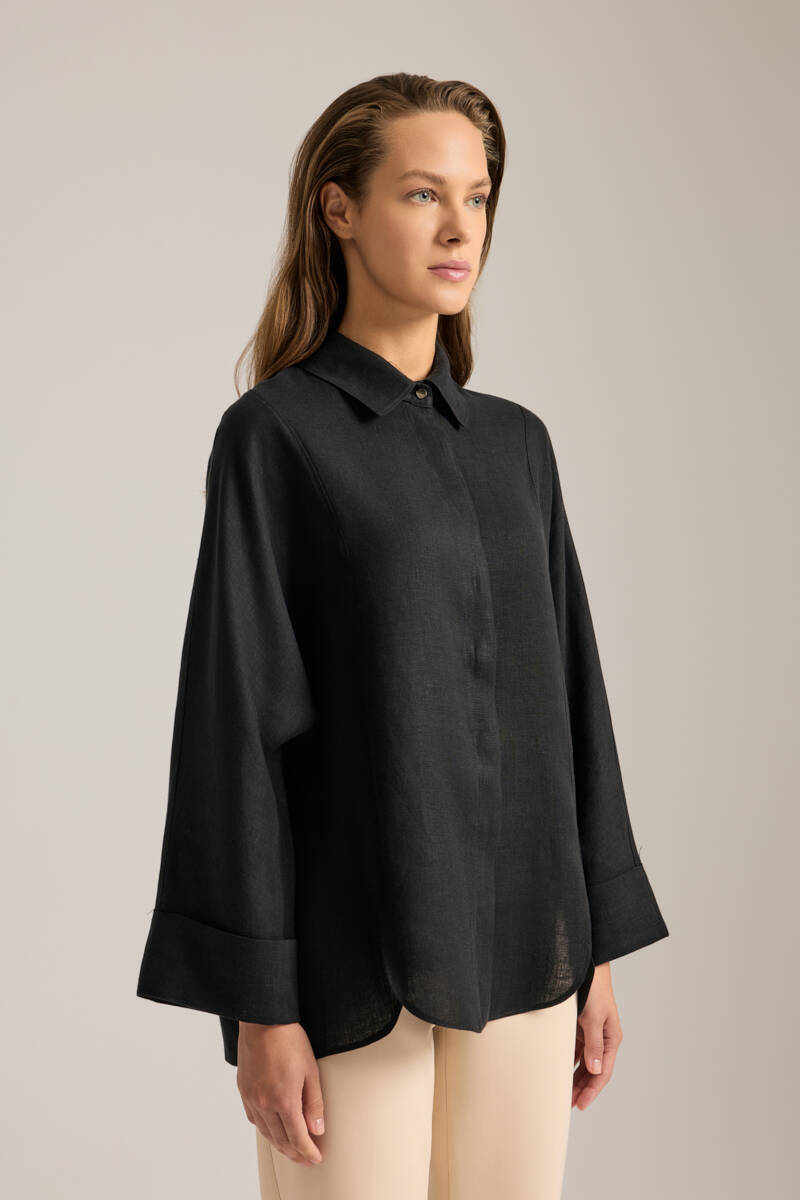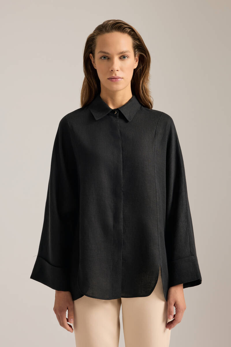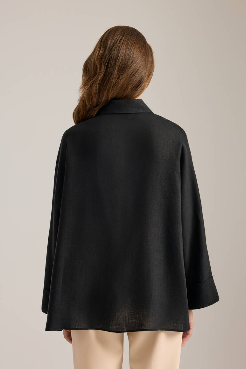 Siyah Rahat Form Tencel Keten Tunik