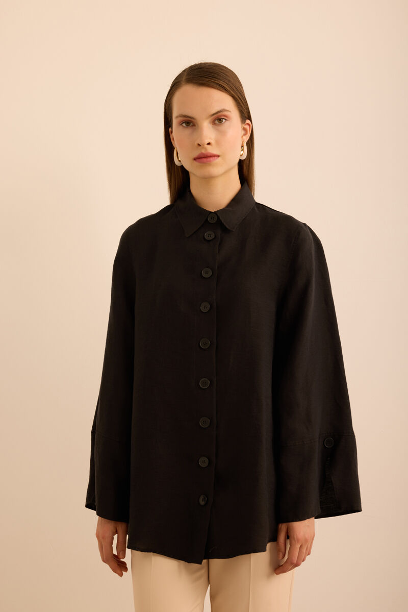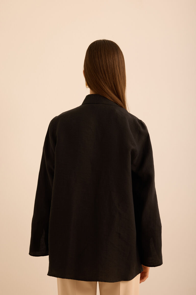 Siyah Kol Ucu Dikiş Detaylı Viscon Tunik