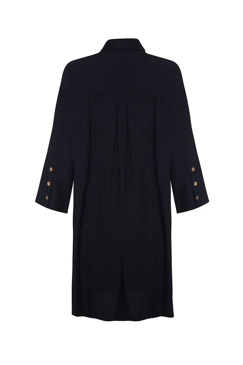 Siyah Rahat Kesim Yarım Patlı Tunik