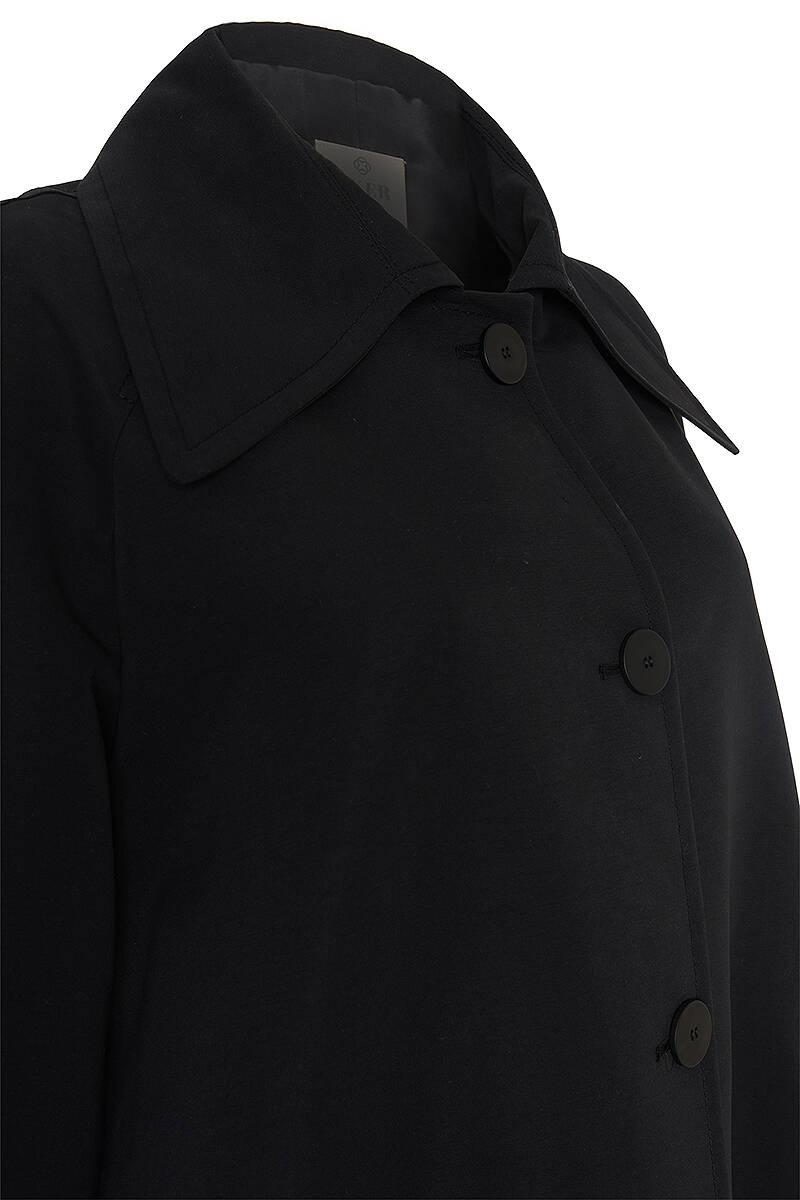 Siyah 18178111 Düğmeli Kruvaze Trençkot