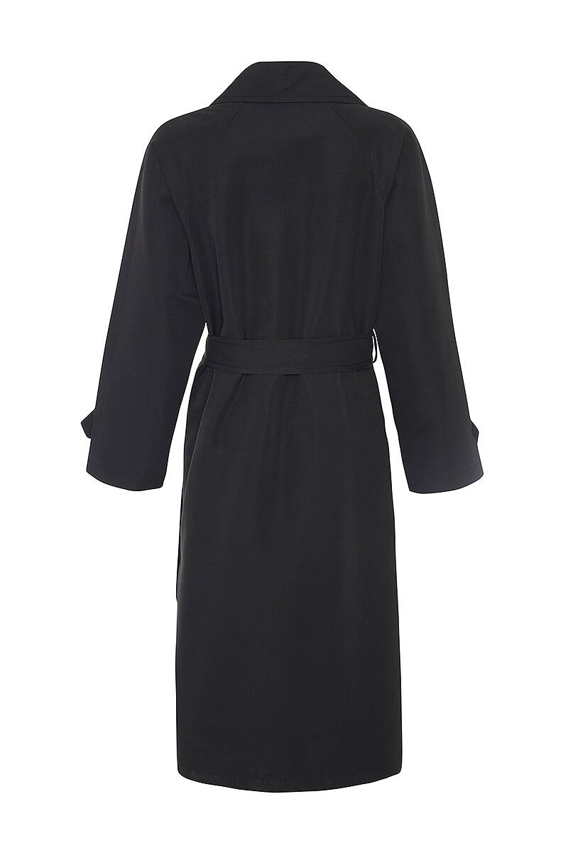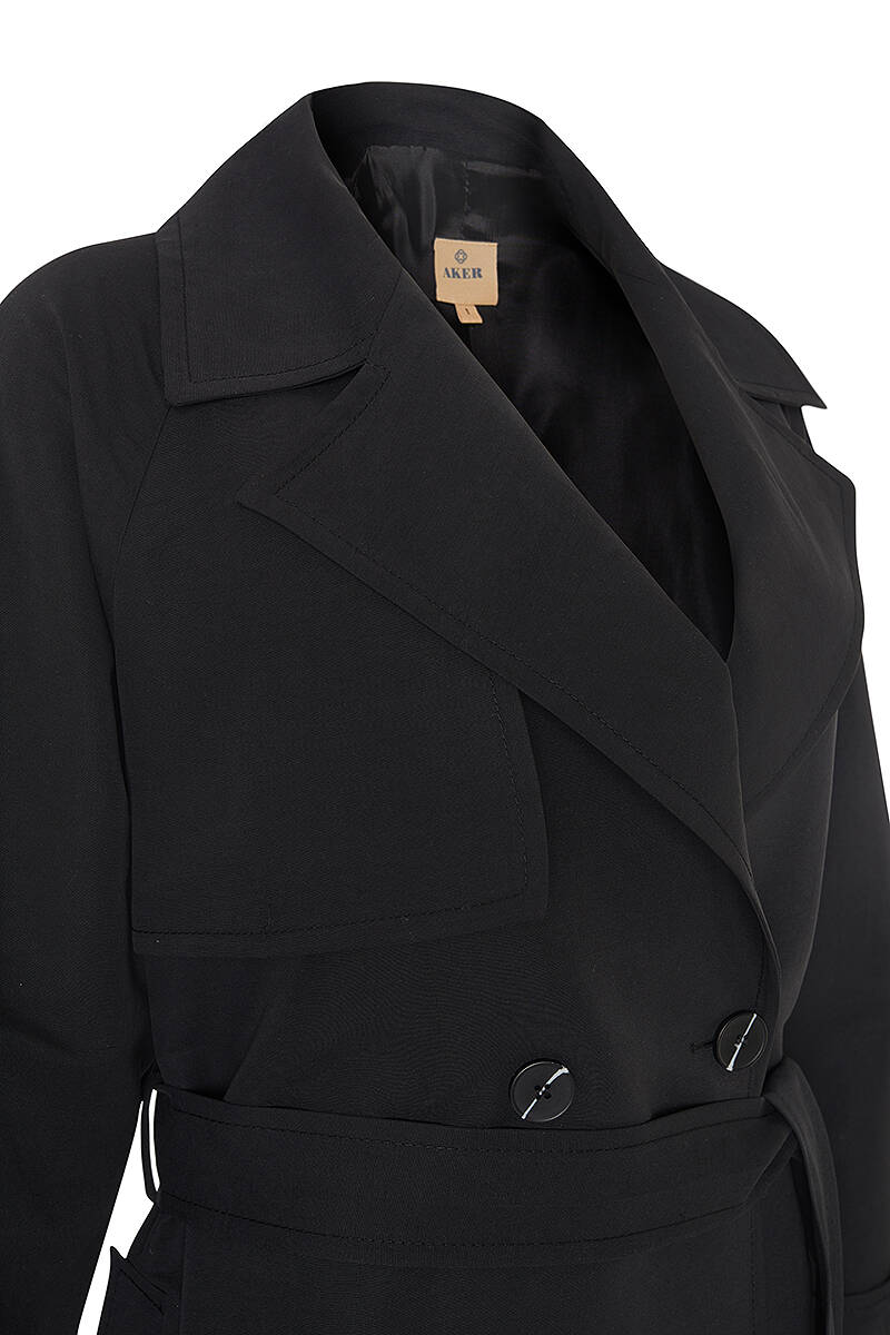 Siyah 18178111 Düğmeli Kruvaze Trençkot
