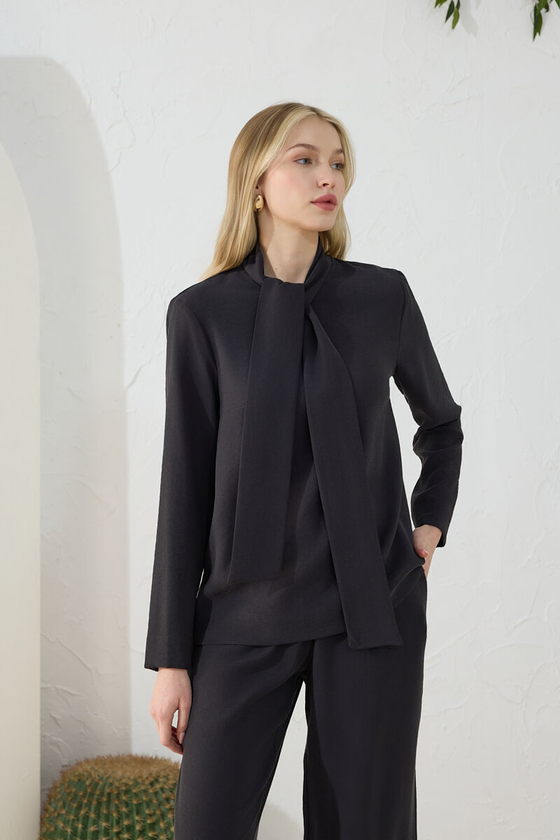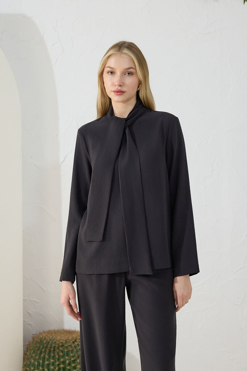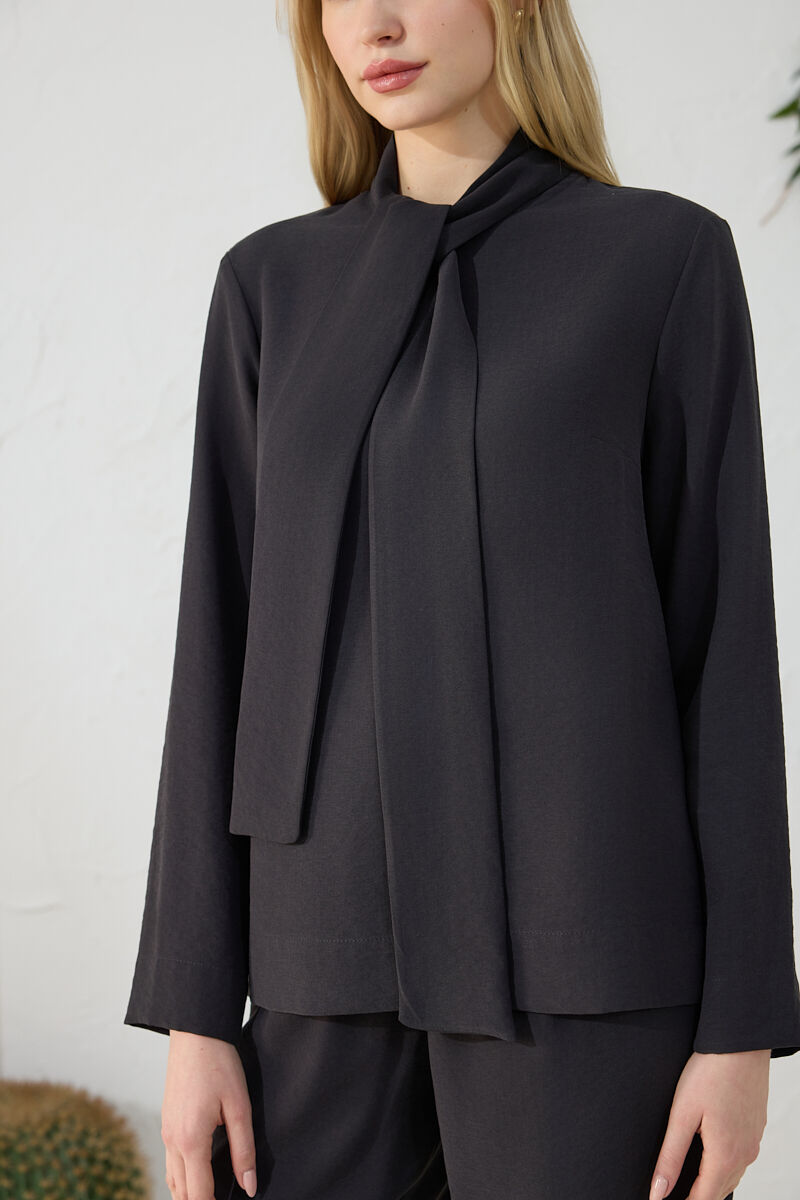 Siyah Şal Yaka Bluz