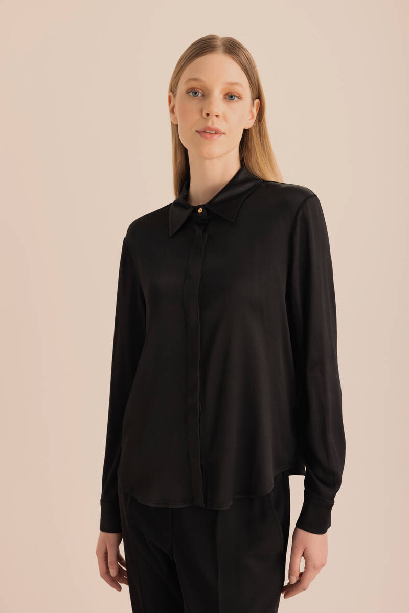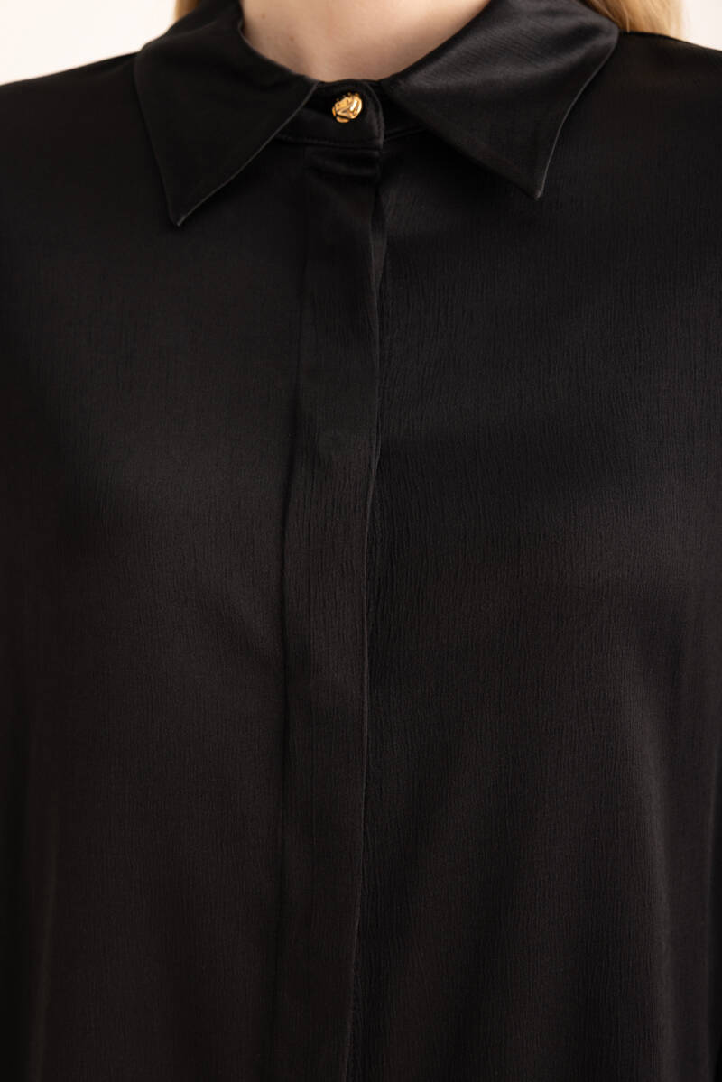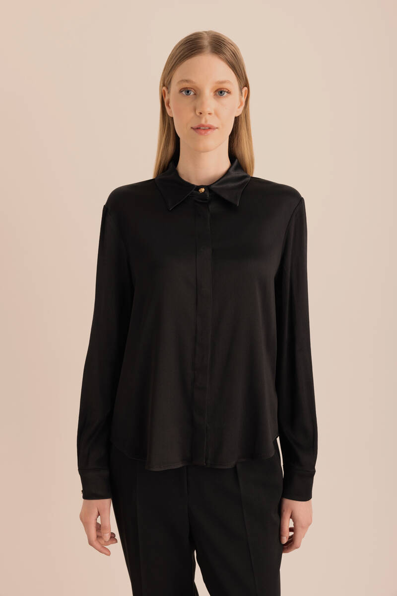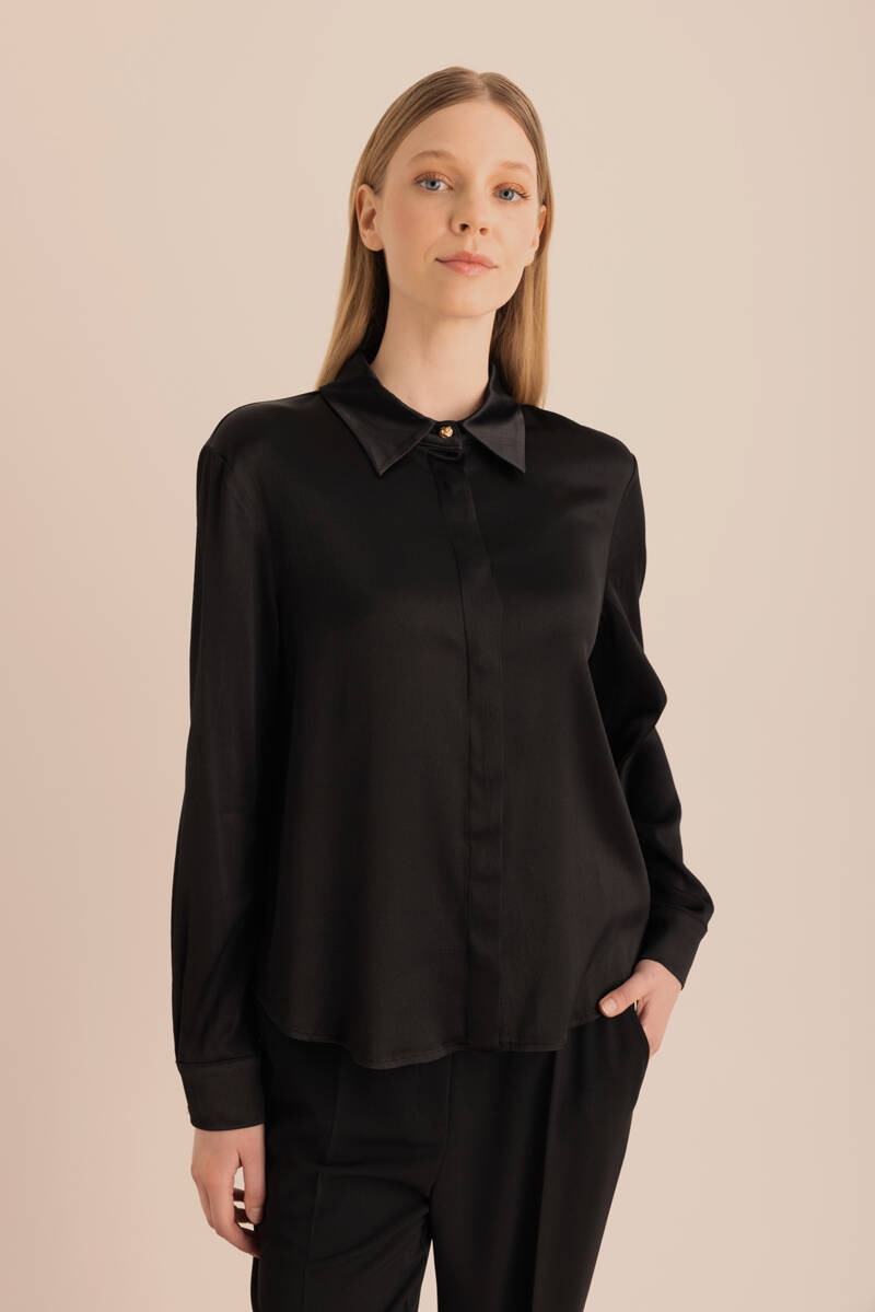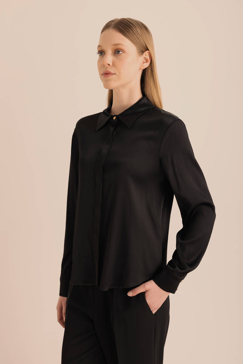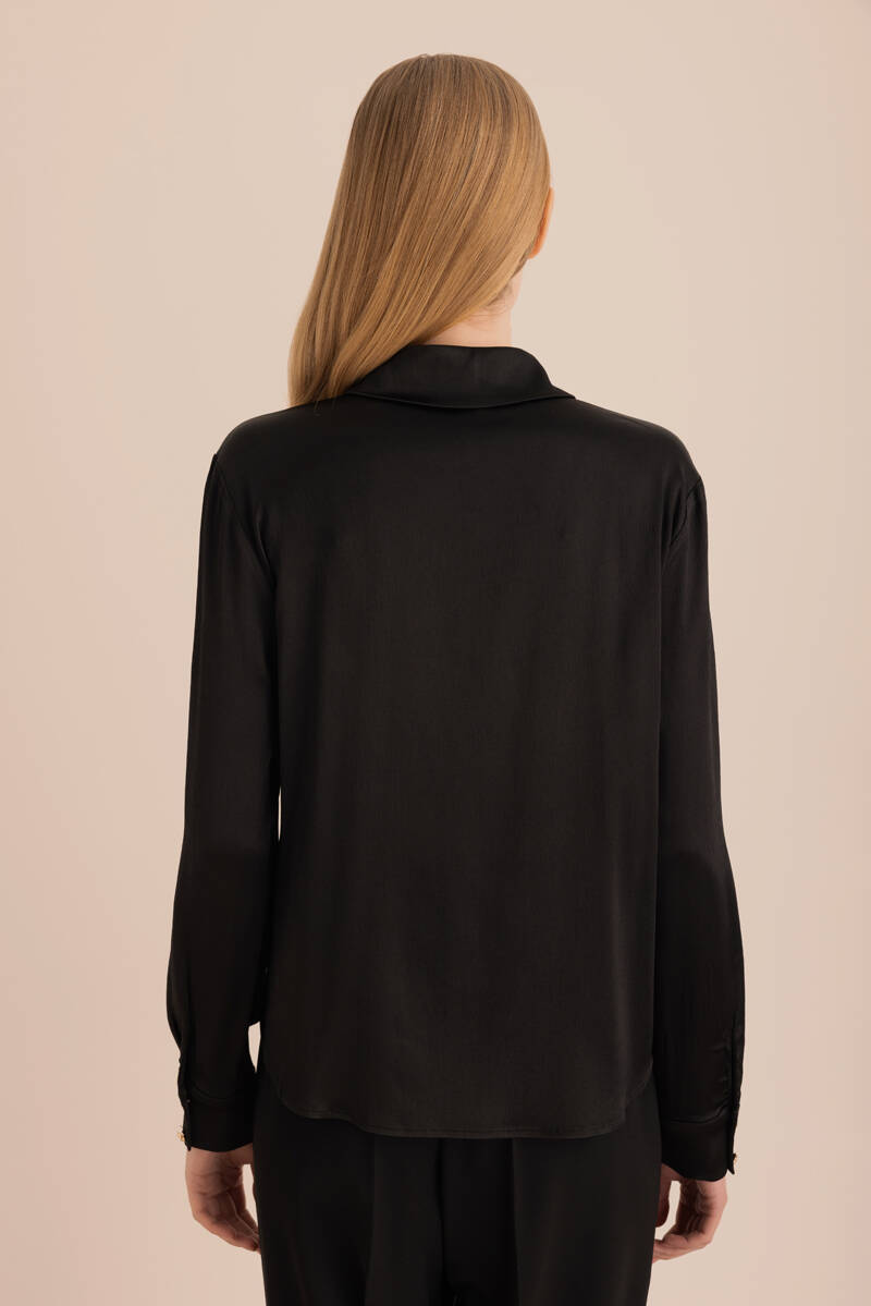 Siyah Saten Görünümlü Doğal İçerikli Gömlek