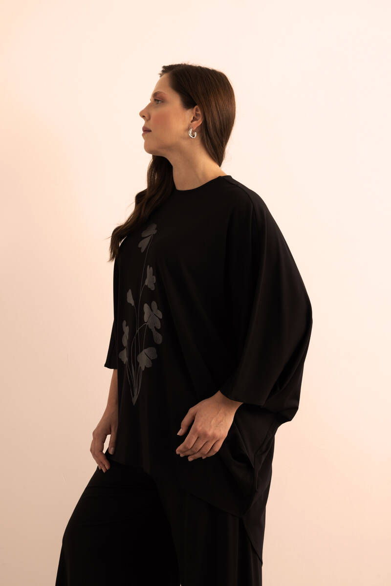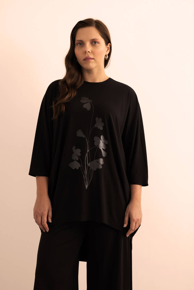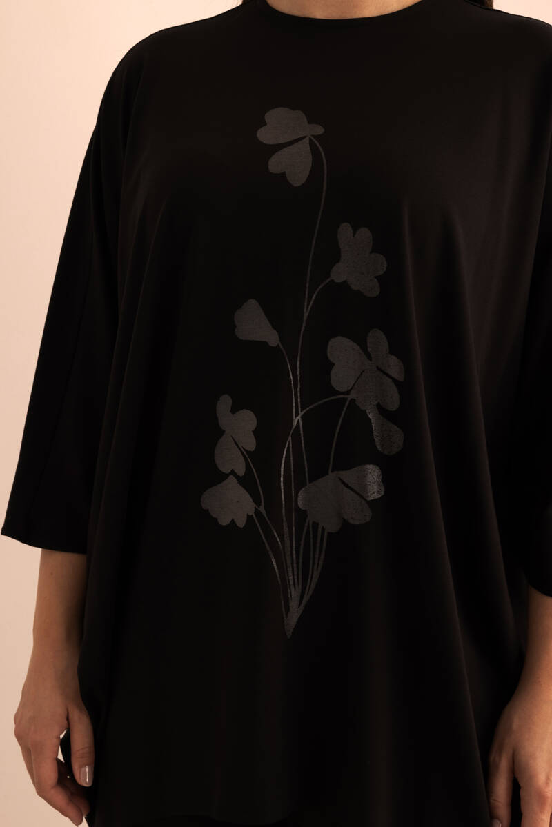 Siyah Şeffaf Baskı Detaylı , Rahat Kalıp Örme Tweenset