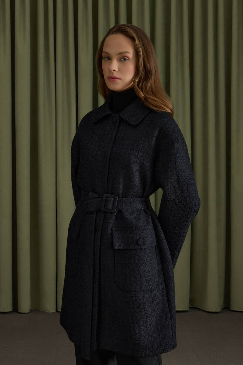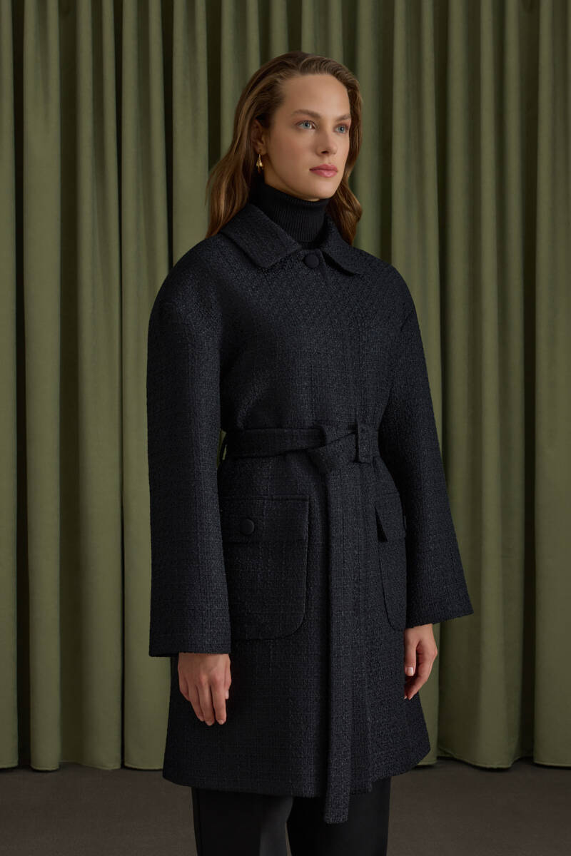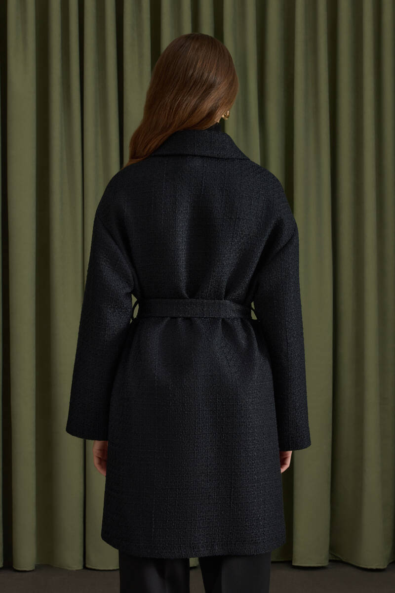 Siyah Seyyar Kuşaklı Keten Kımono