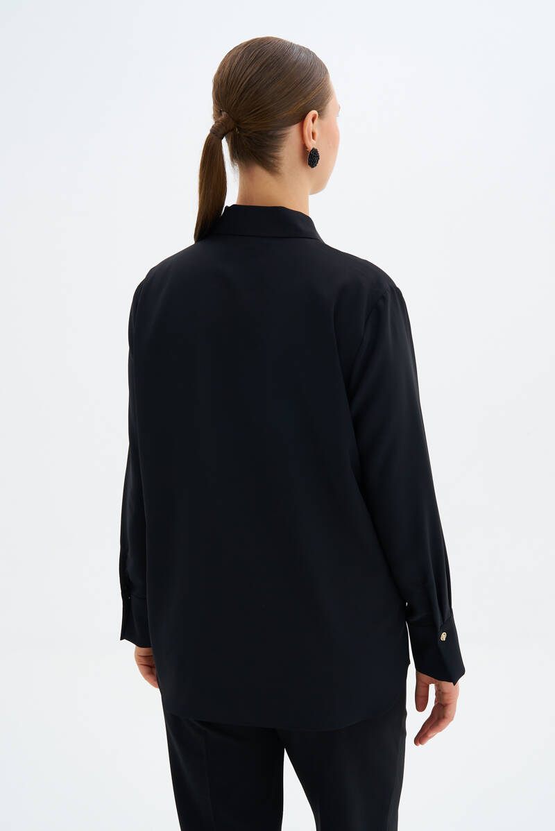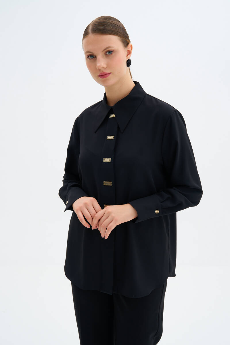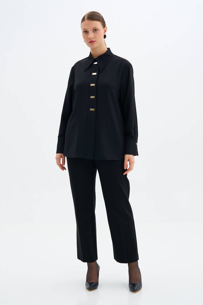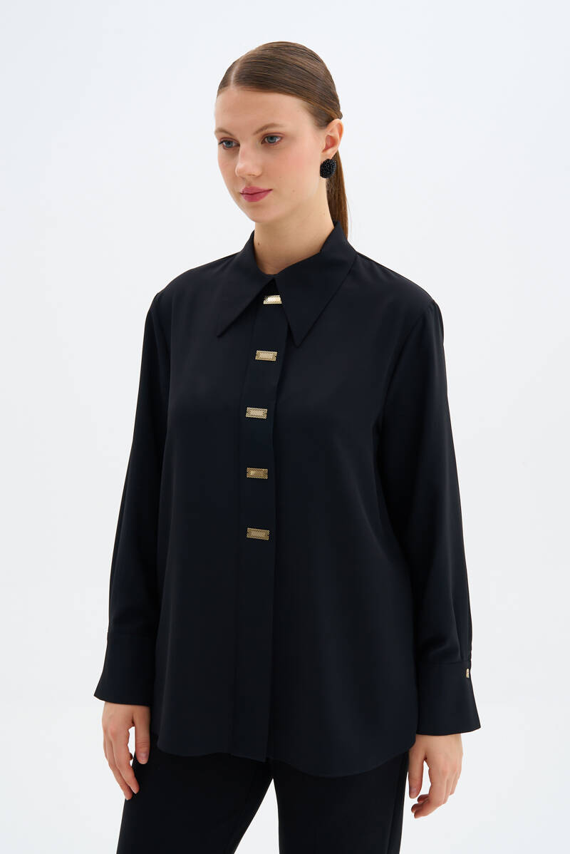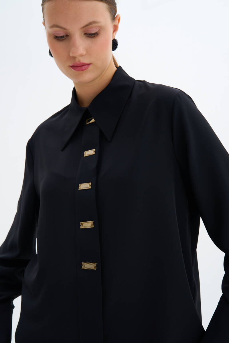 Antrasit Yaka İşlemeli Çizgili Bluz