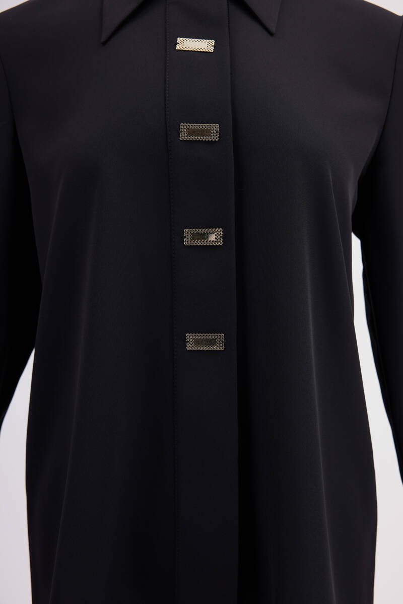 Siyah 2243111 Yakası Taşlı Bluz