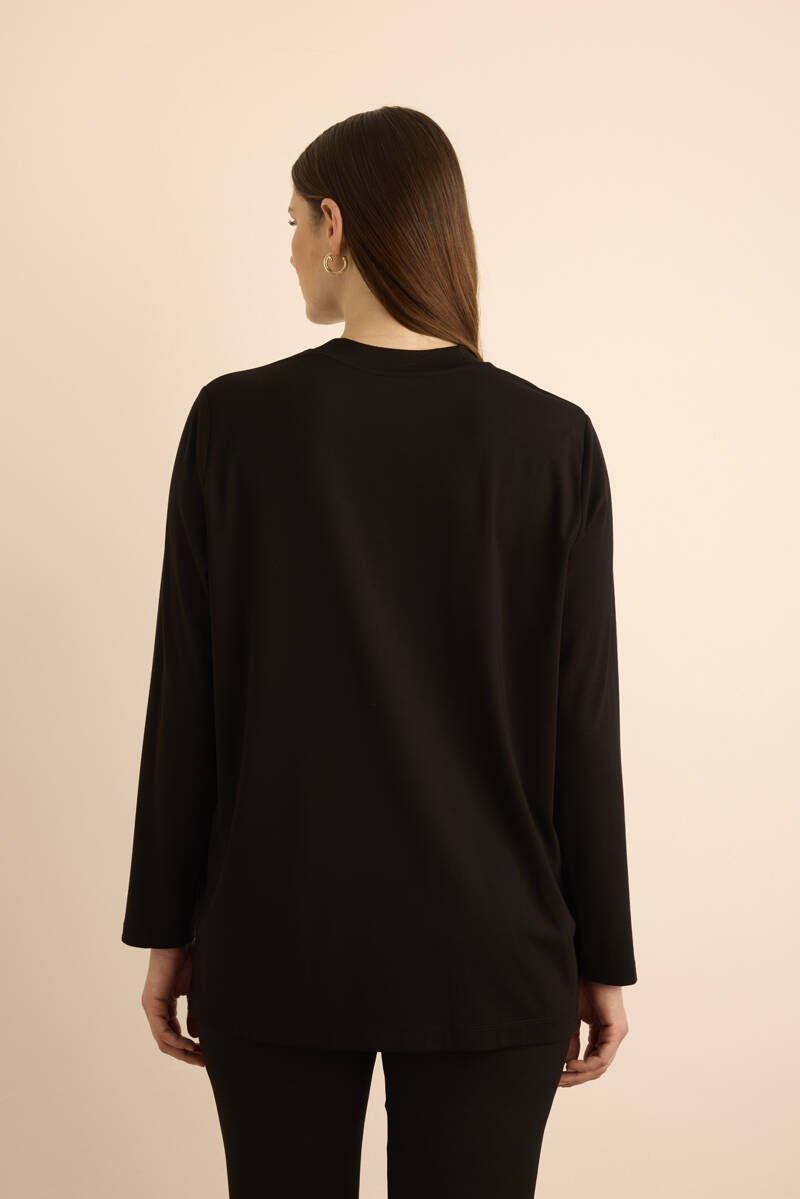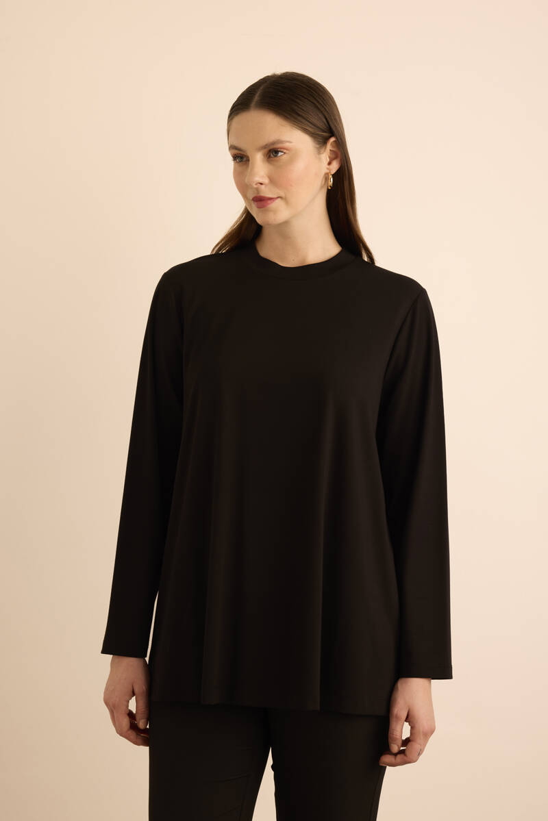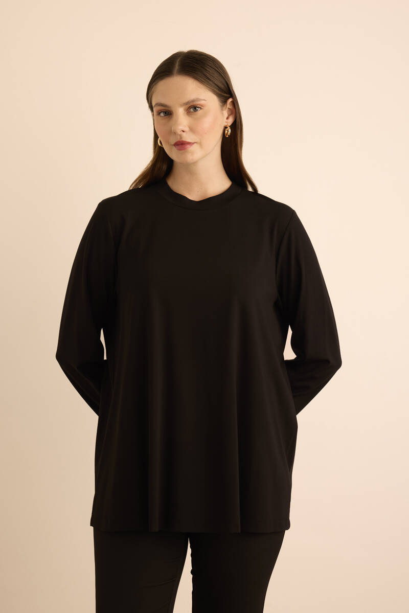 Siyah Yakası Fermuarlı Keten Tencel Tunik