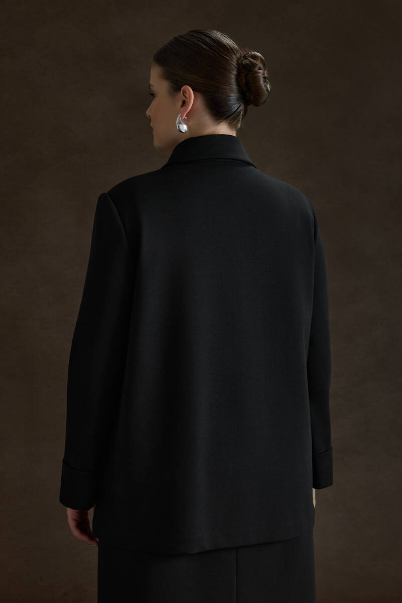 Siyah Önden Bağcık Detaylı Örme Kimono