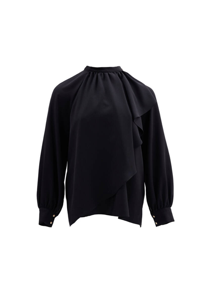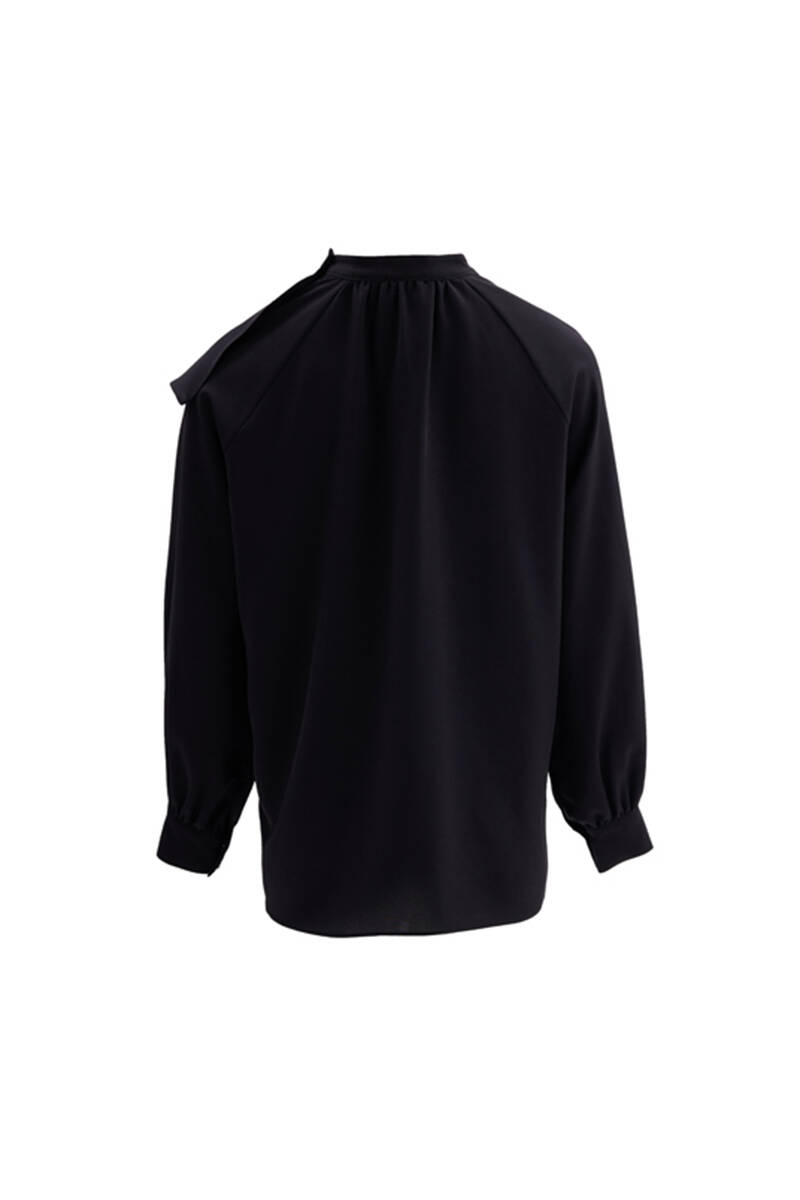Antrasit Yaka İşlemeli Çizgili Bluz