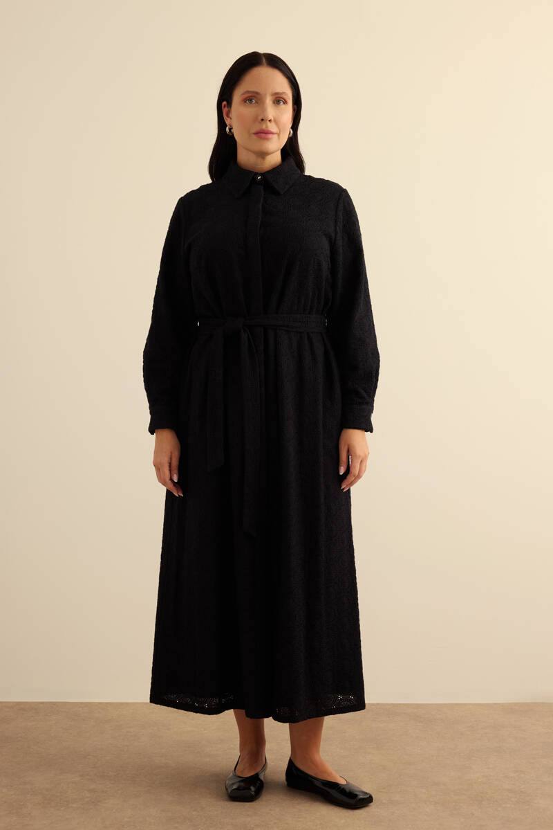 Siyah Seyyar Çiçek Detaylı Varak Dokuma Elbise