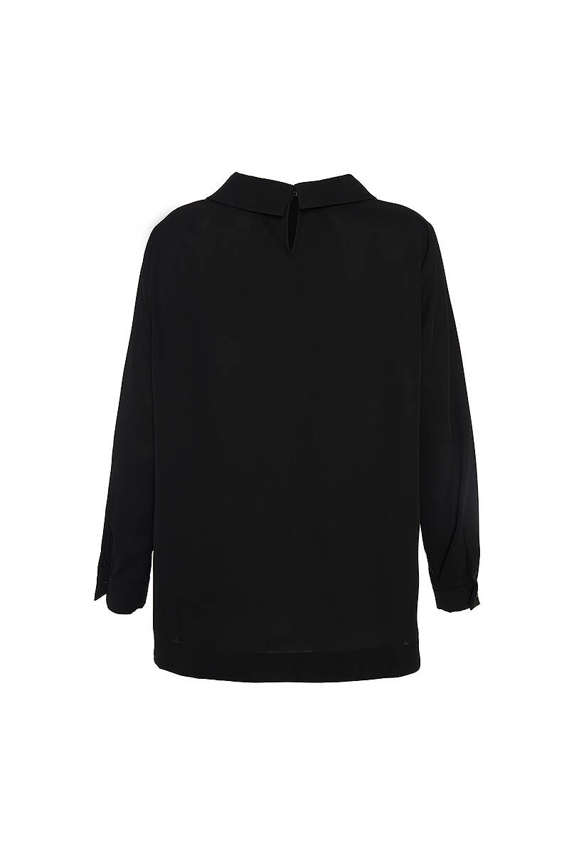 Siyah Katlama Detaylı Bluz