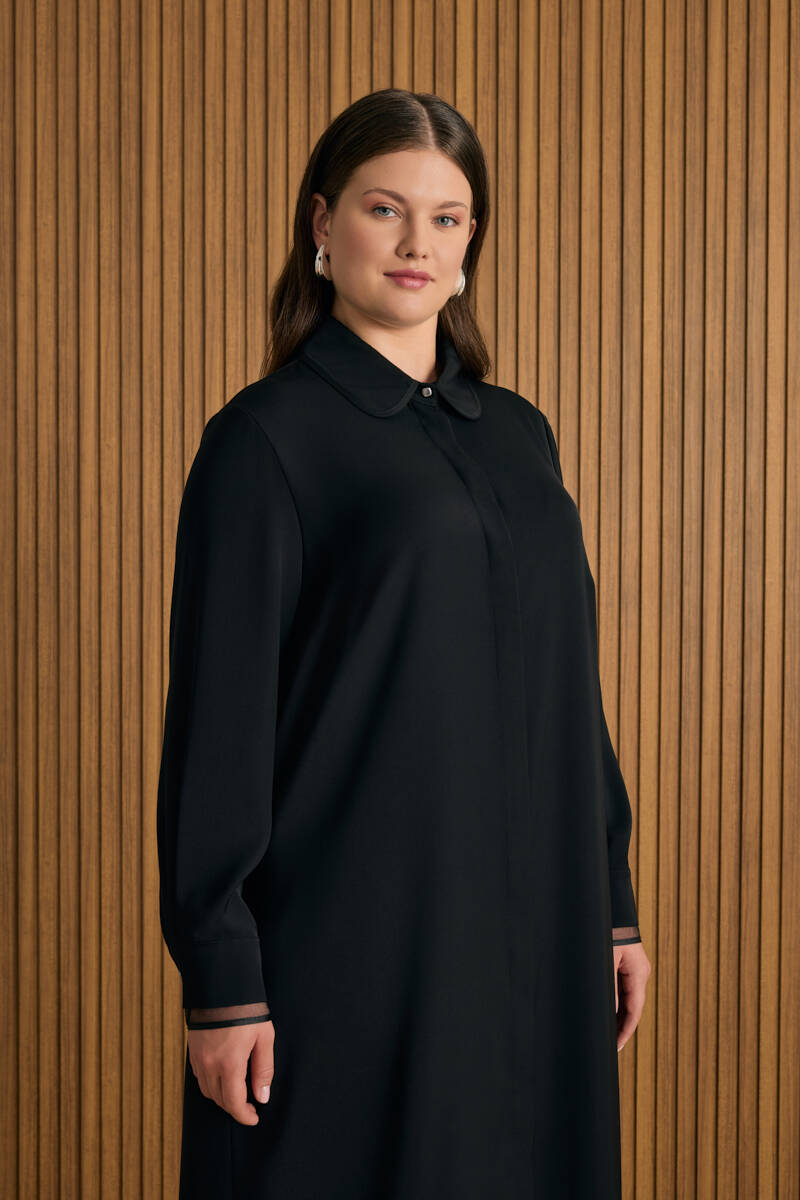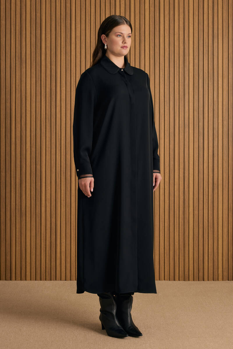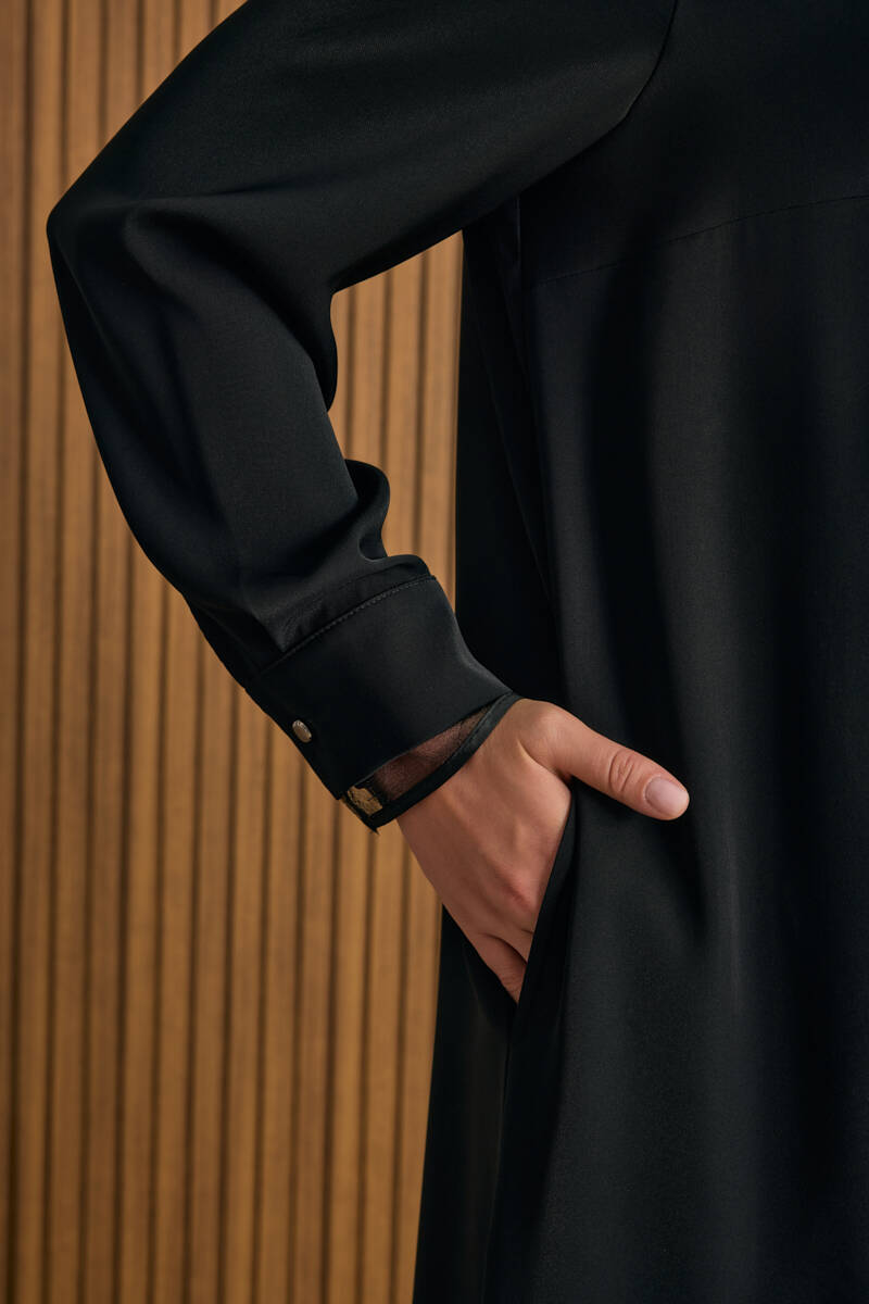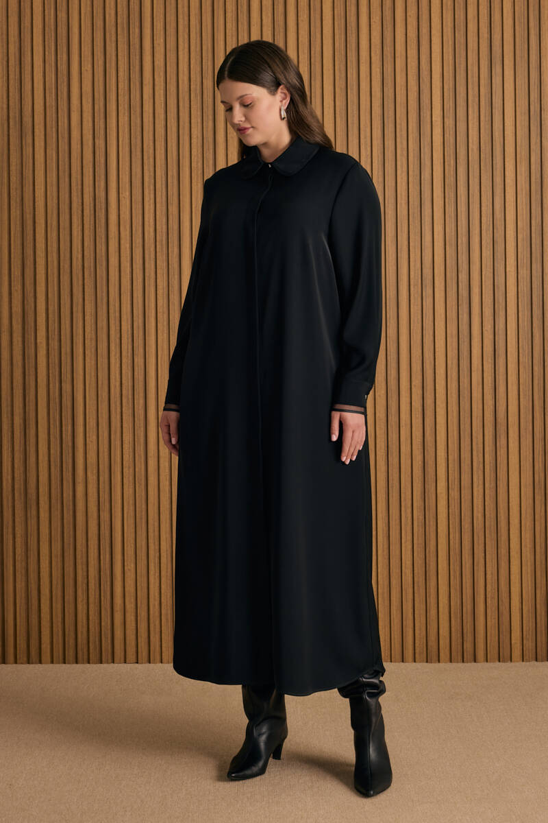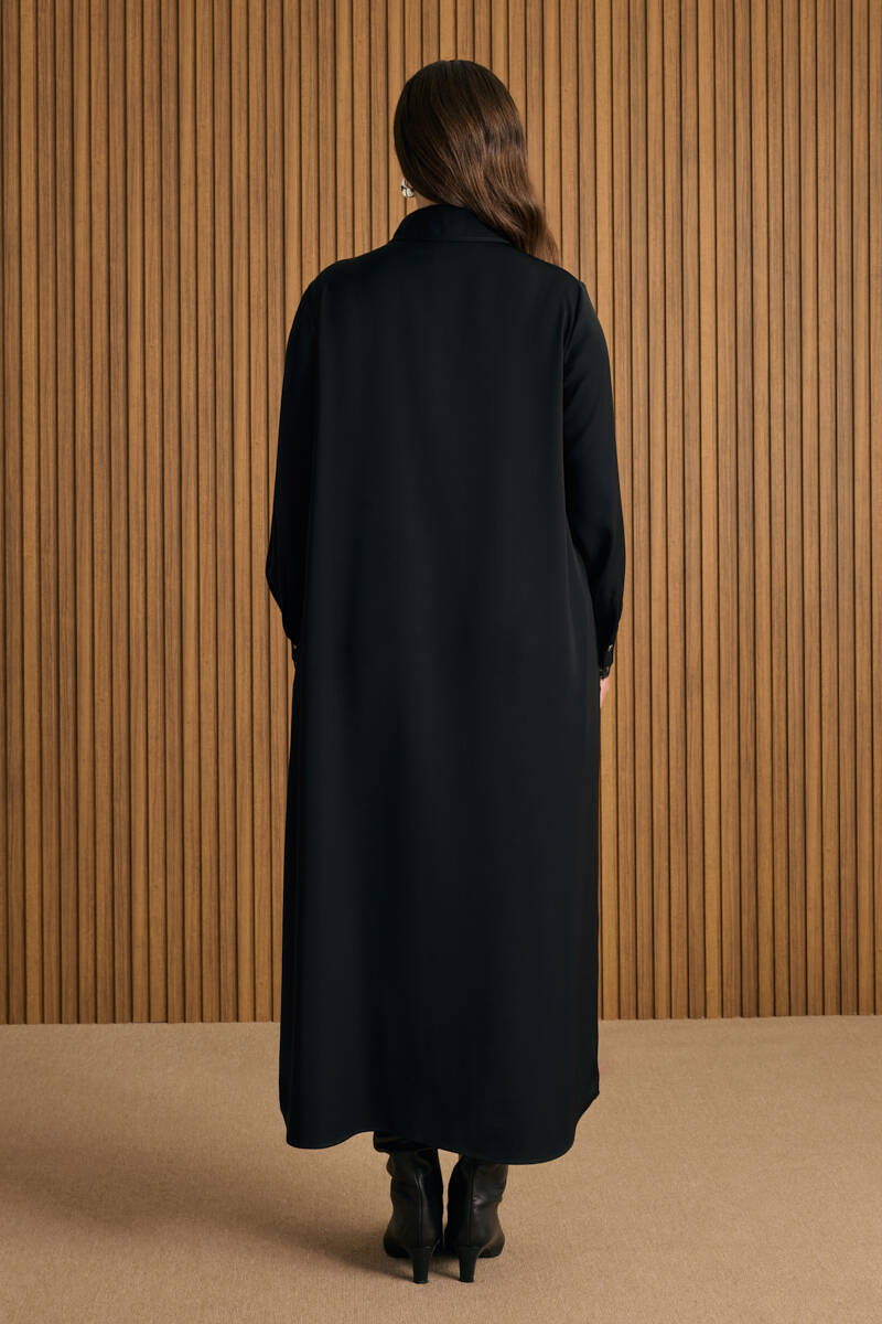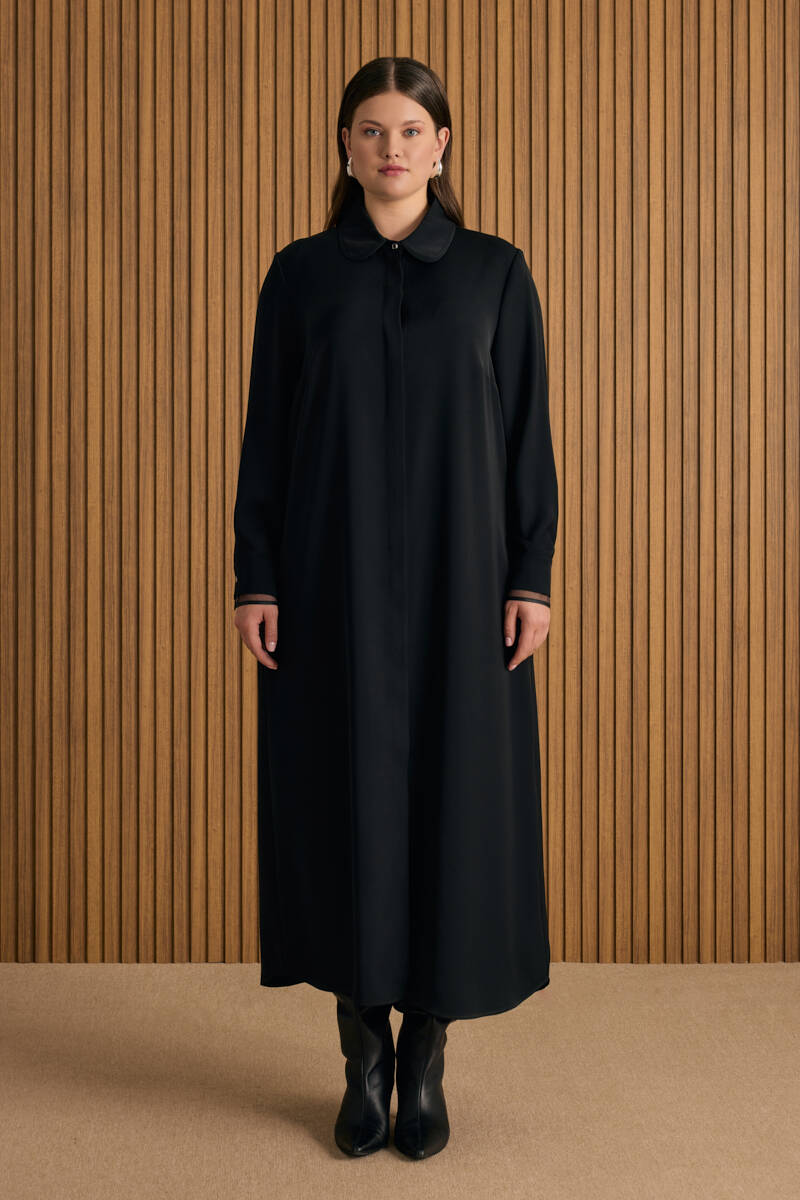 Siyah Önden Düğmeli Ferace