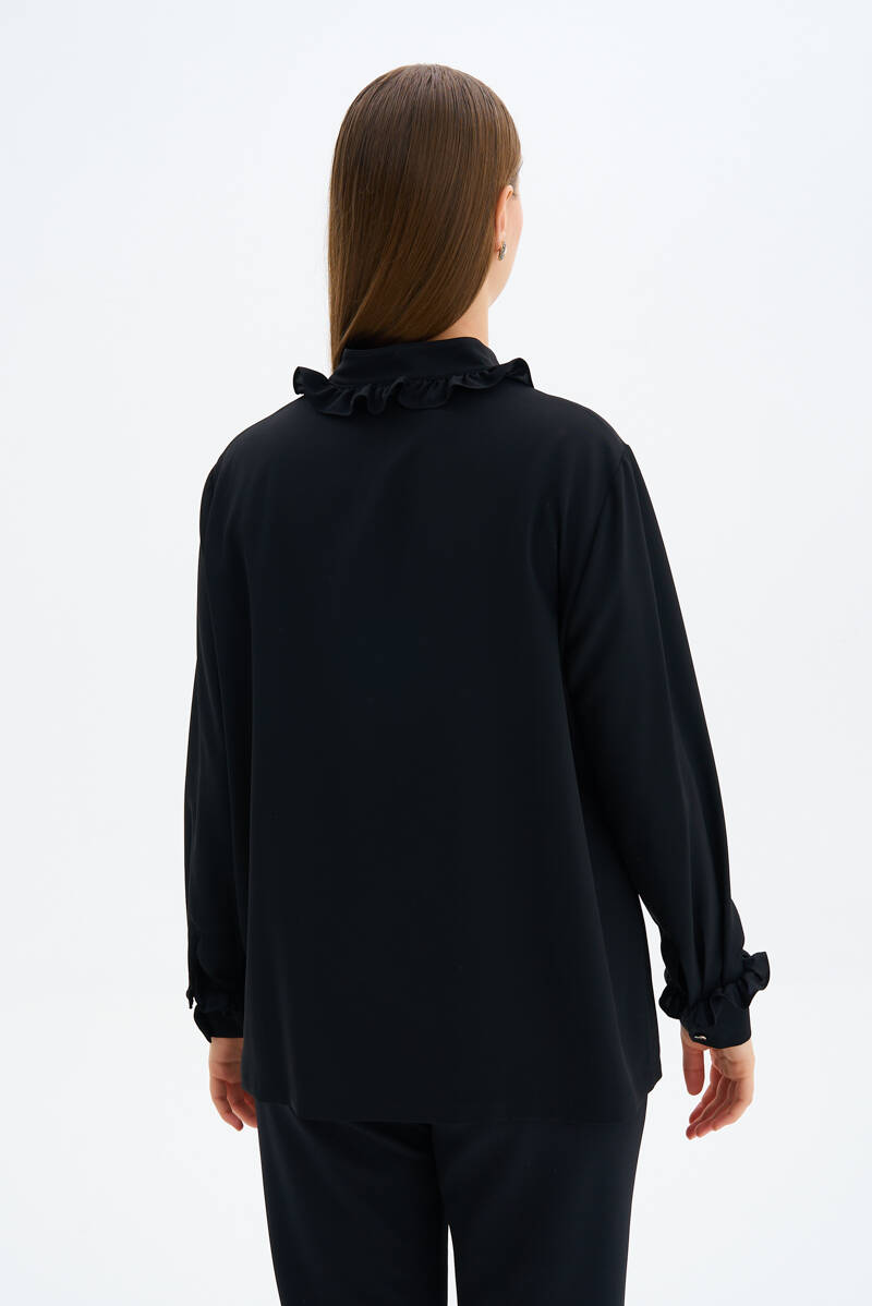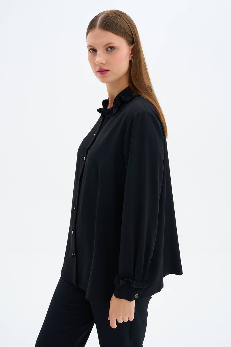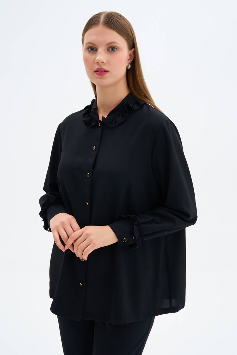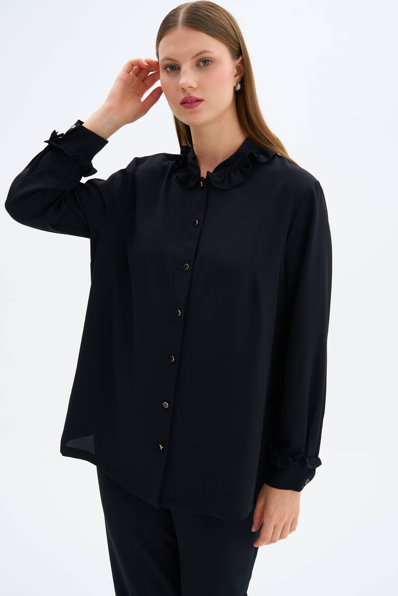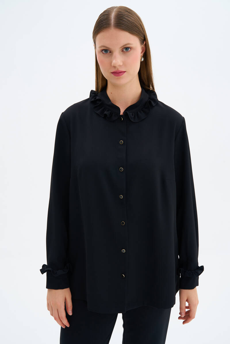 Antrasit Yaka İşlemeli Çizgili Bluz