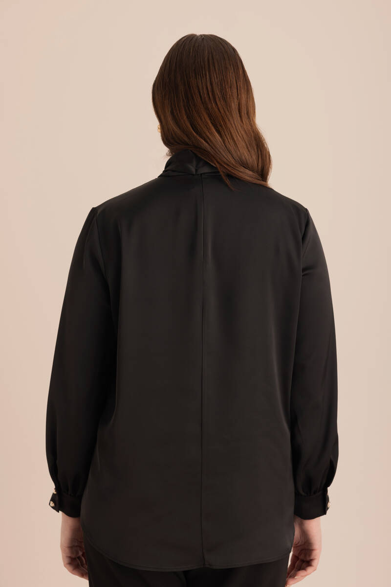 Siyah Tencel Keten Bluz