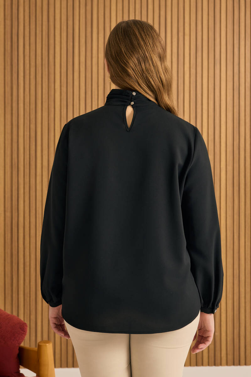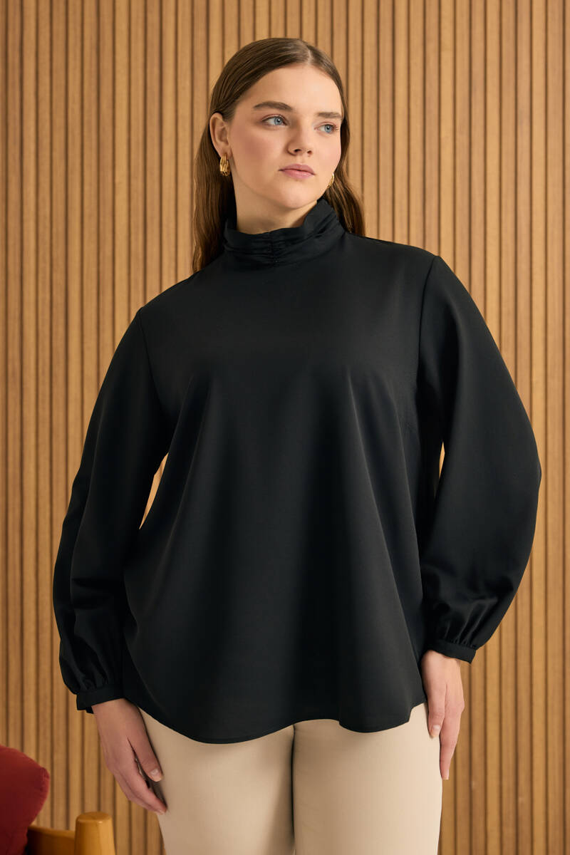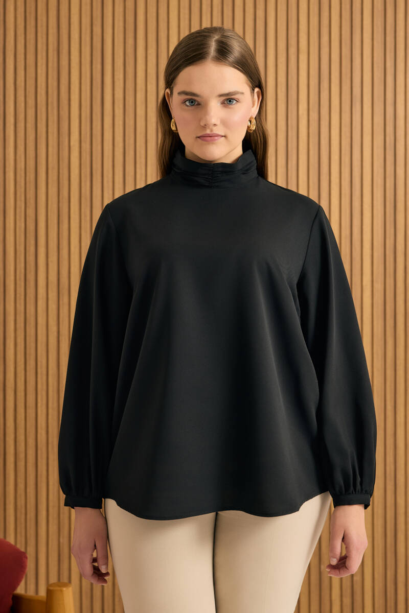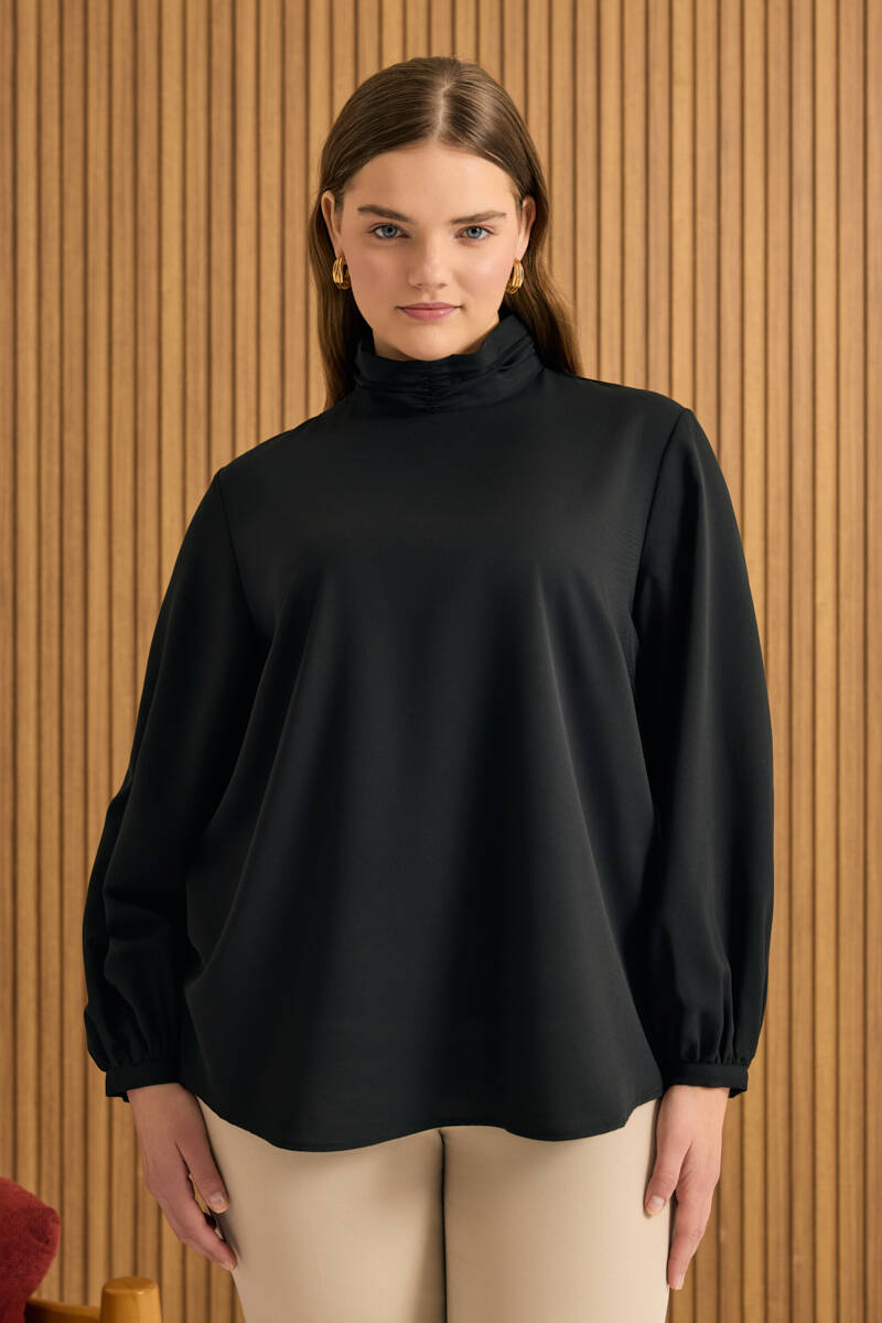 Siyah Tencel Keten Bluz