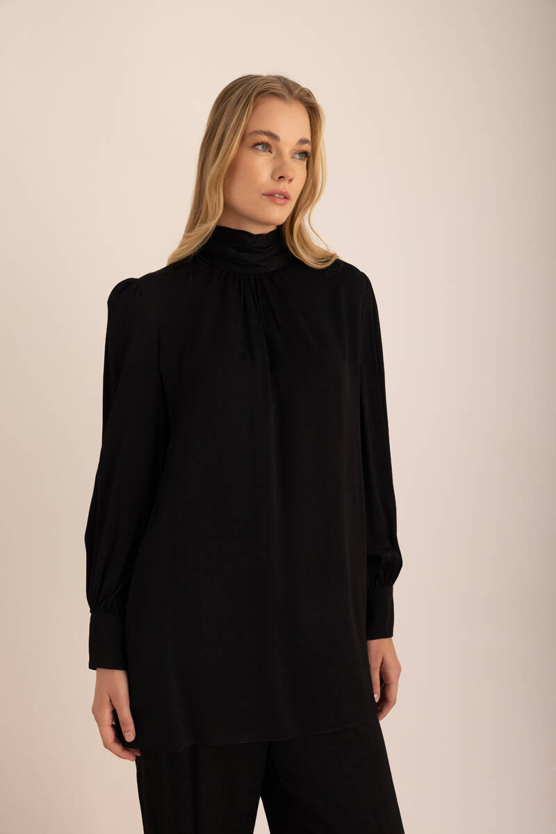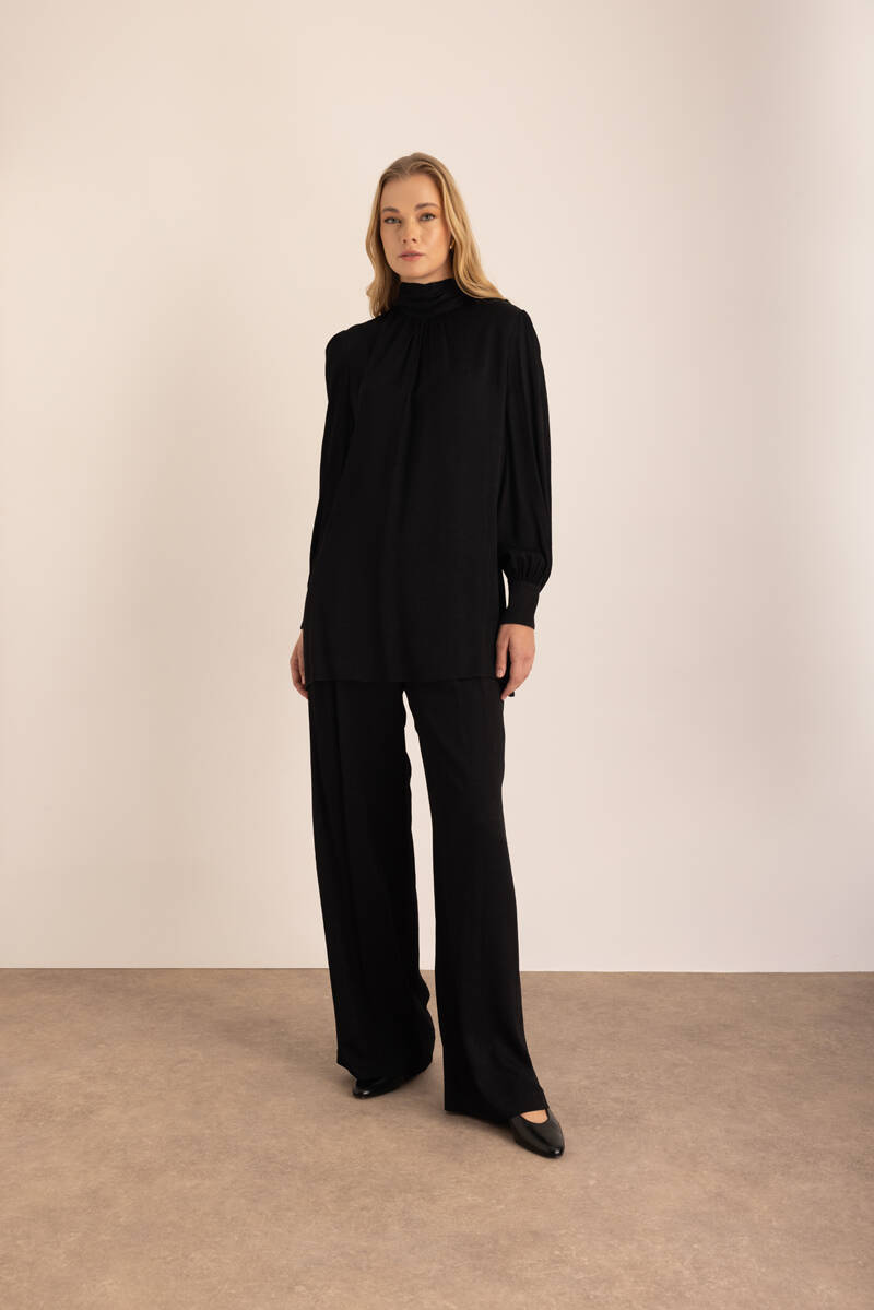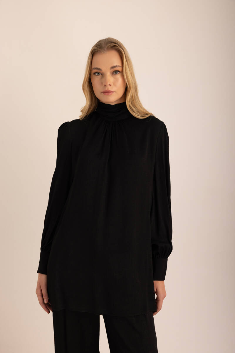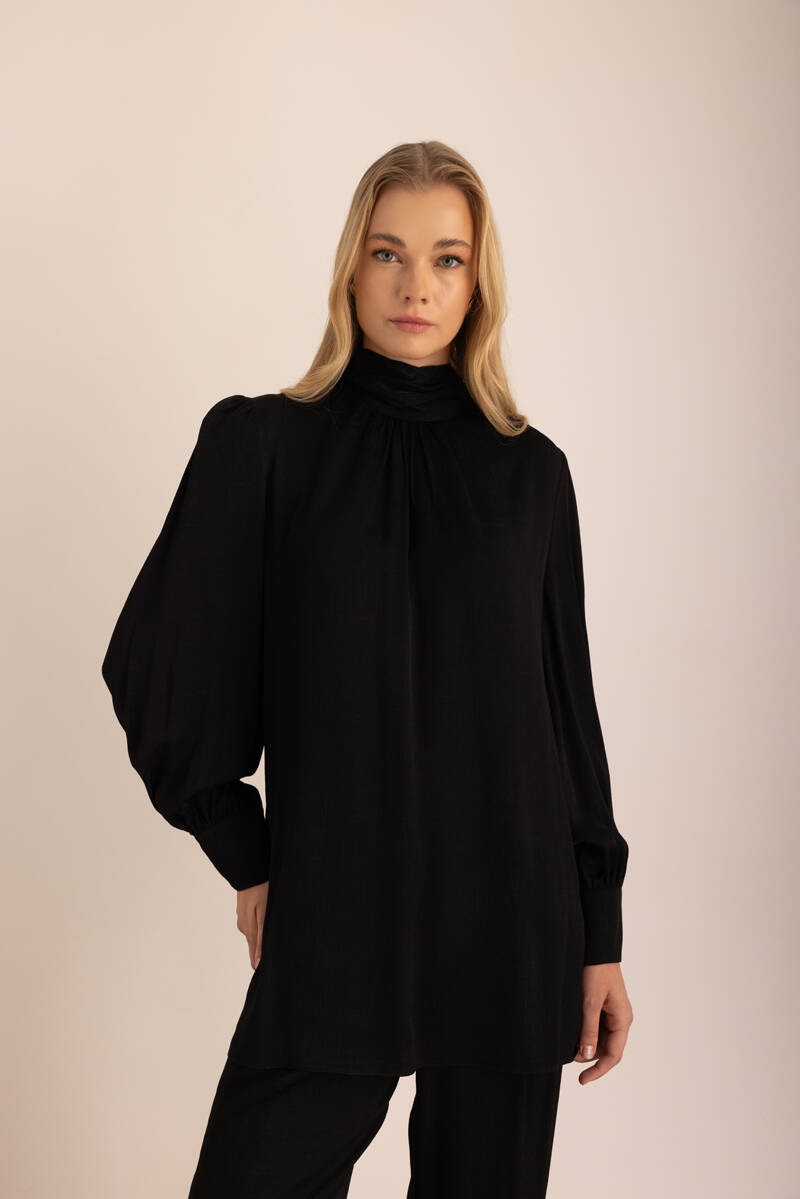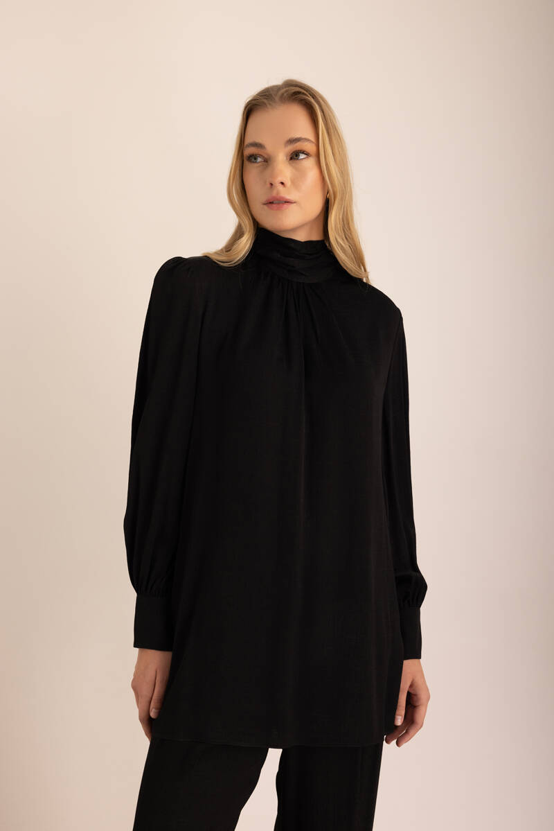 Saks Ön Göğüs Kısmı Pile ve Parça Detaylı Bluz