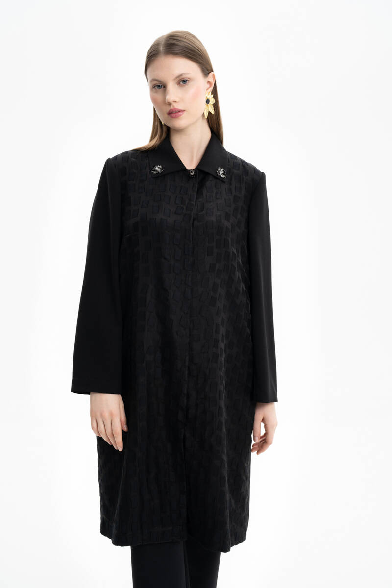 Siyah Yakası İşleme Detaylı Abiye Kap
