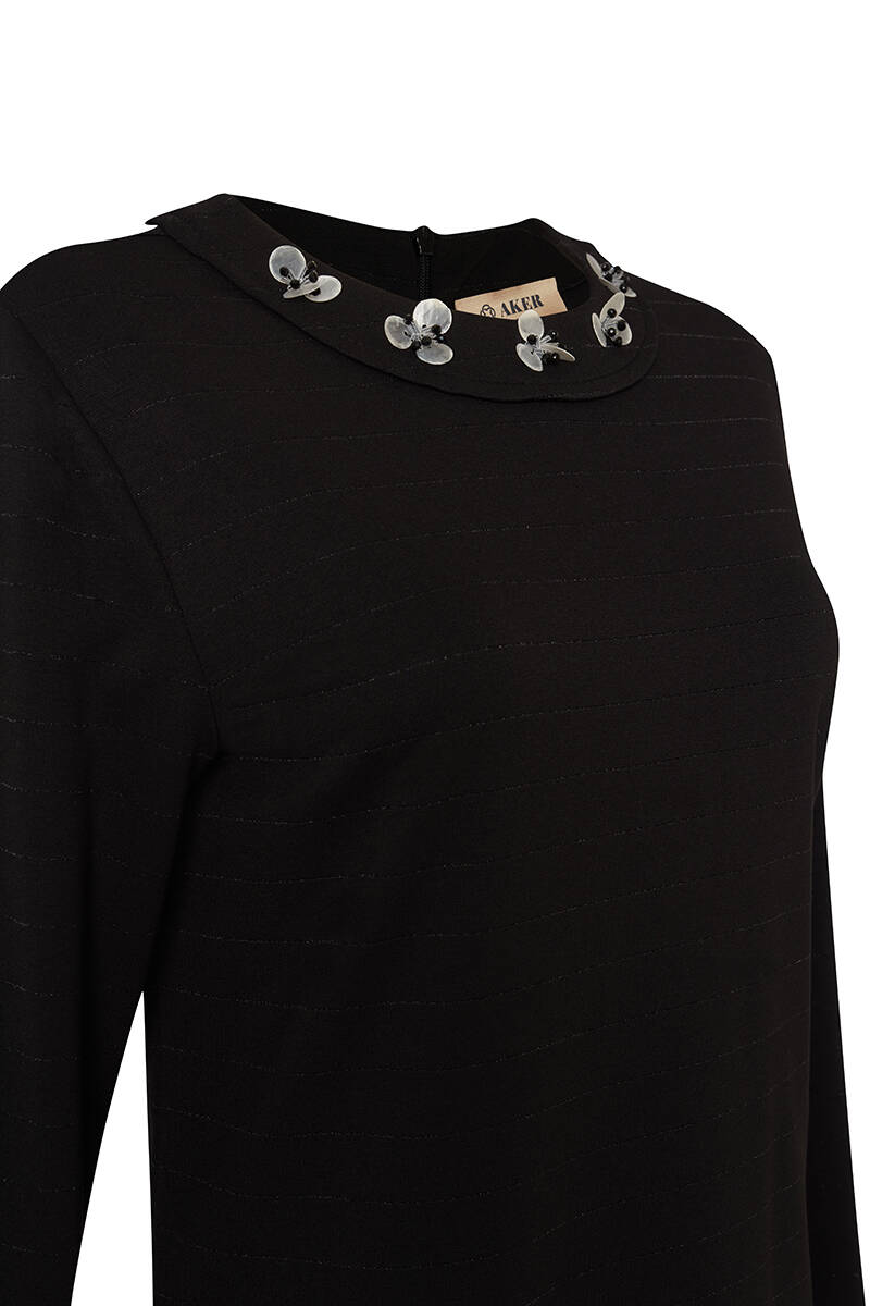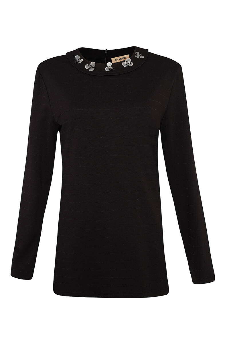 Siyah Yakası Taşlı Bluz