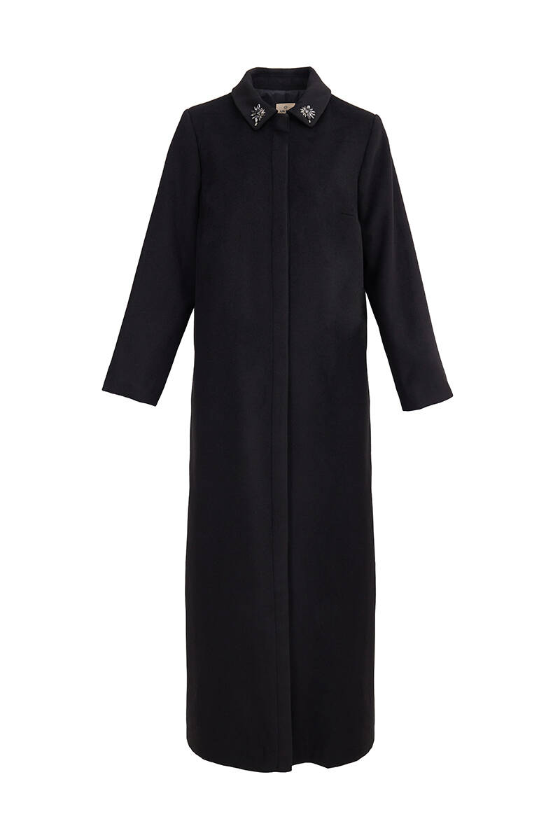 Ekru Kruvaze Kapamalı Pens Detaylı Manto
