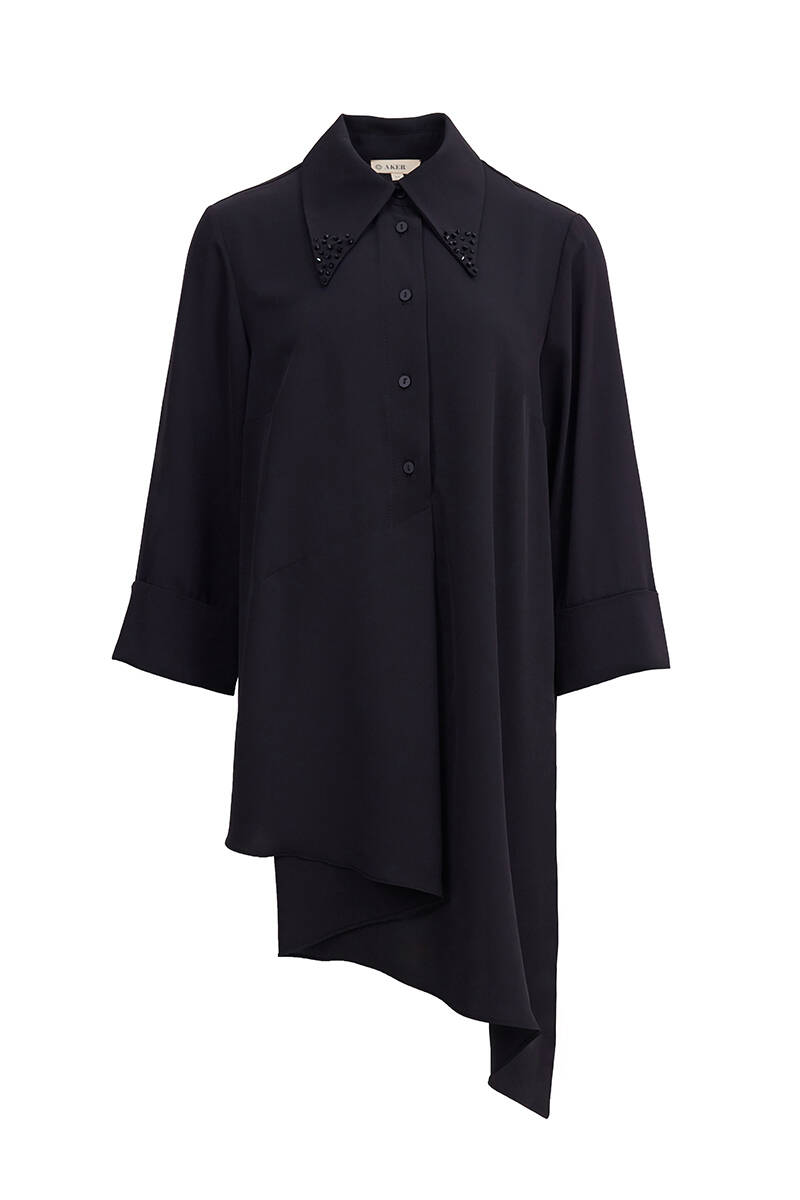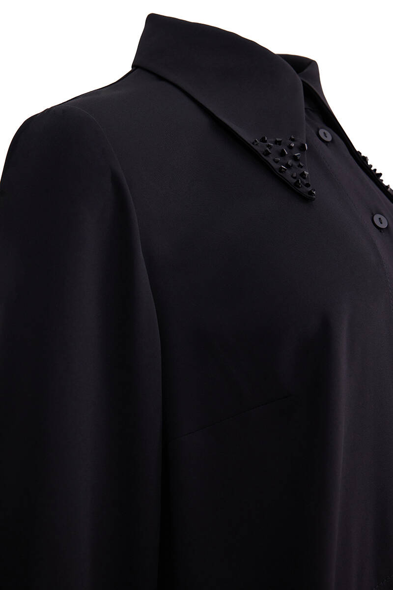 İndigo Dikiş Detaylı Hakim Yaka Tunik