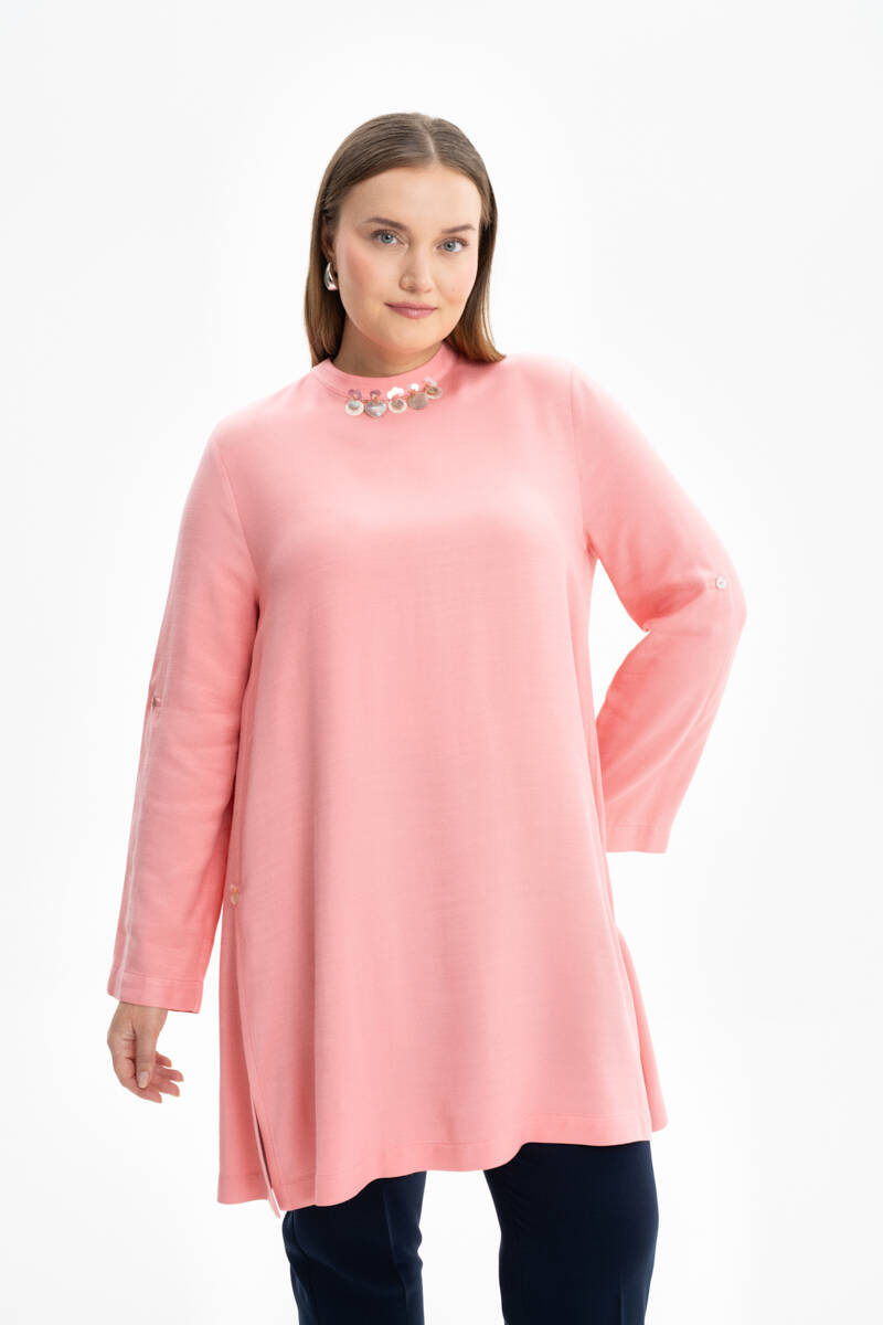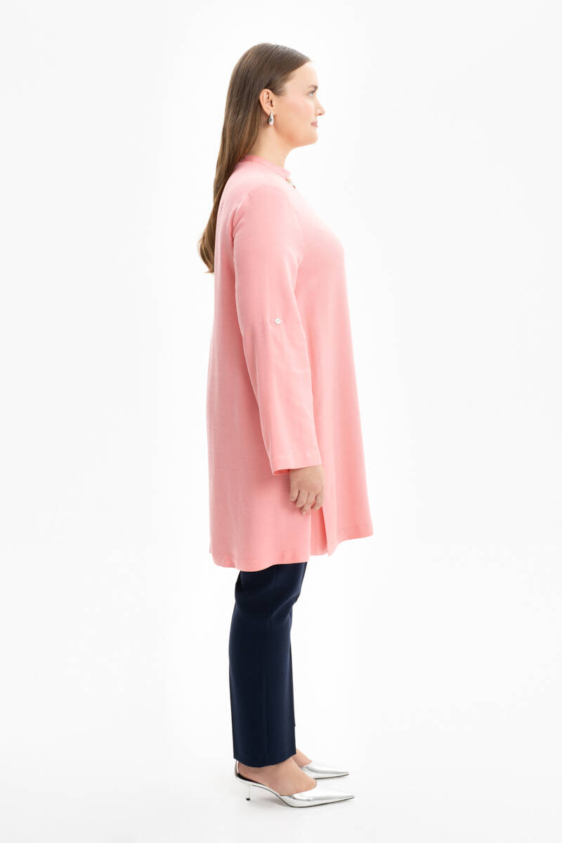 İndigo Dikiş Detaylı Hakim Yaka Tunik