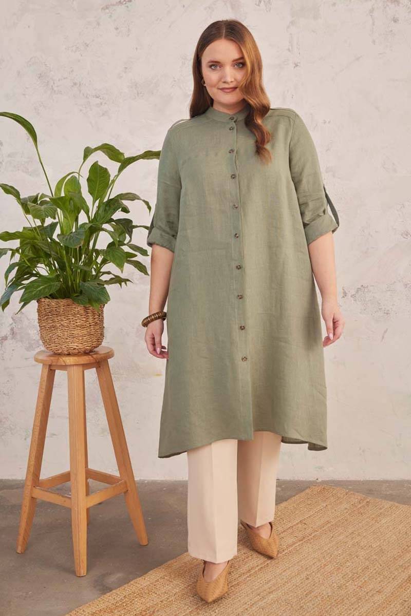 Mint Rahat Kesim İşleme Detaylı Tunik