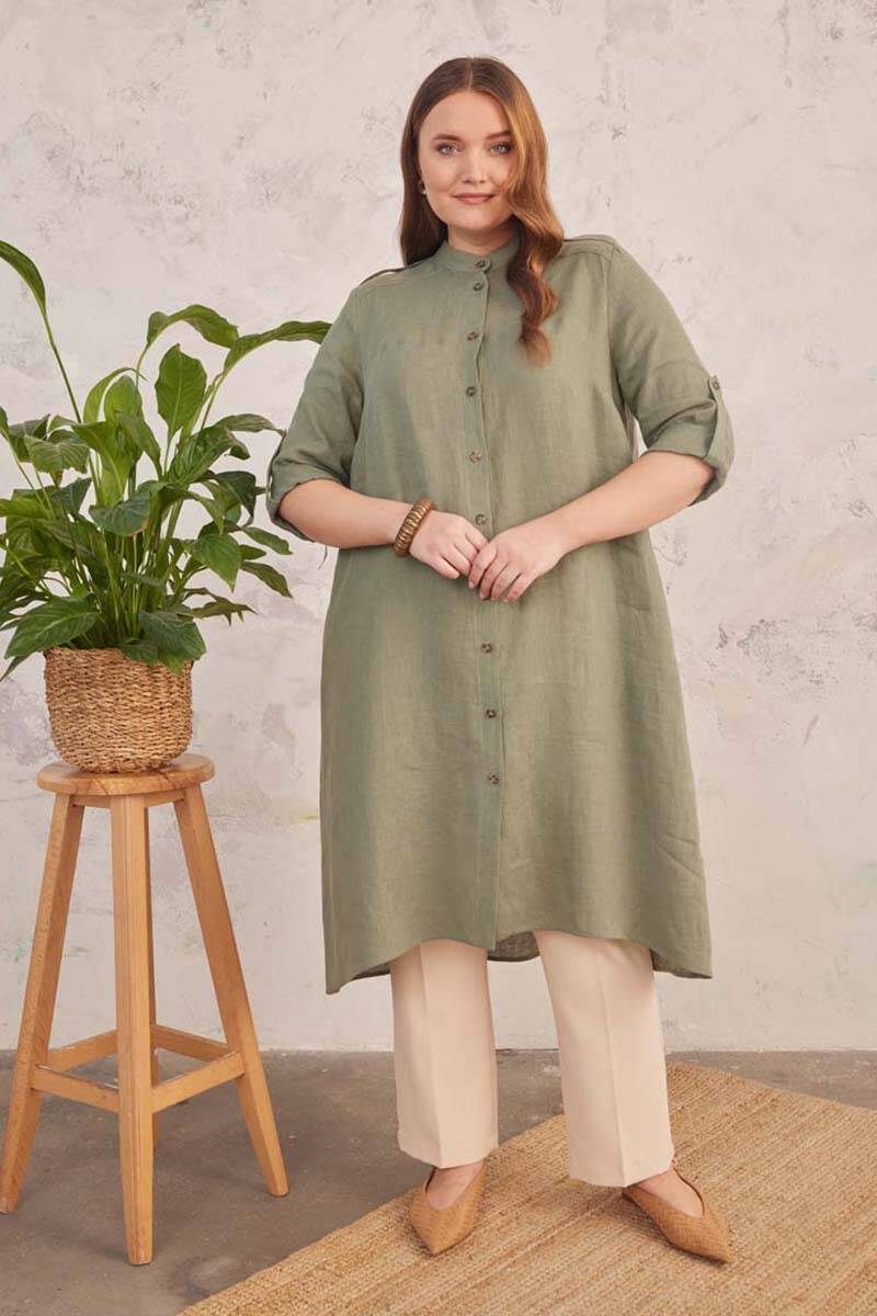 Mint Rahat Kesim İşleme Detaylı Tunik