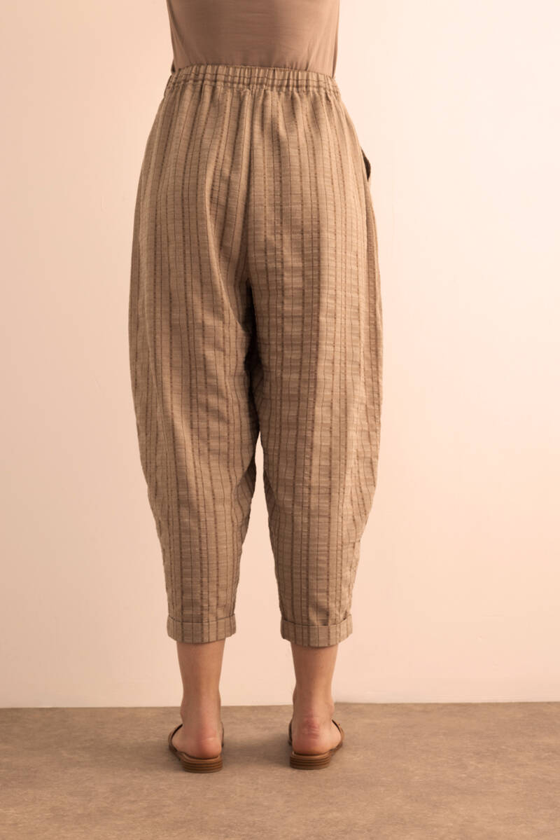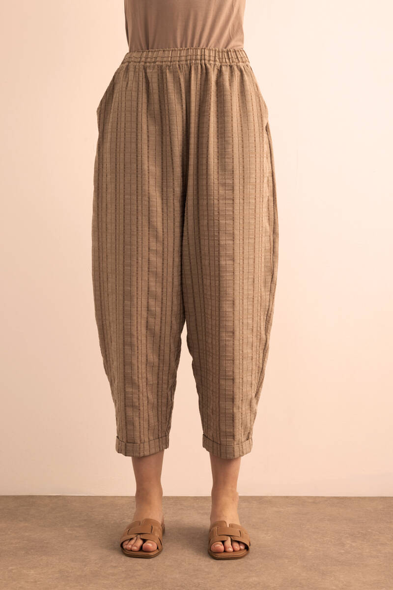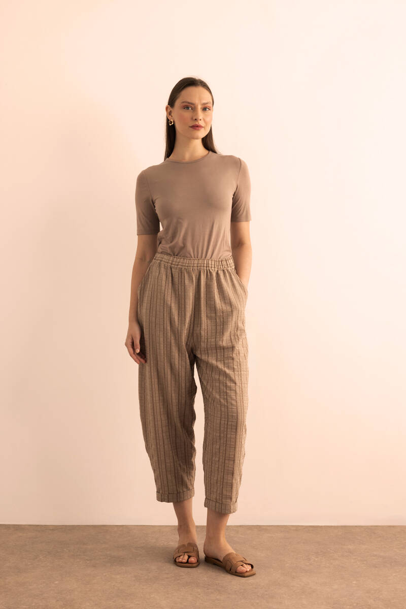 Sütlü Kahve Dokusu Çizgili Cotton İçerikli Pantolon