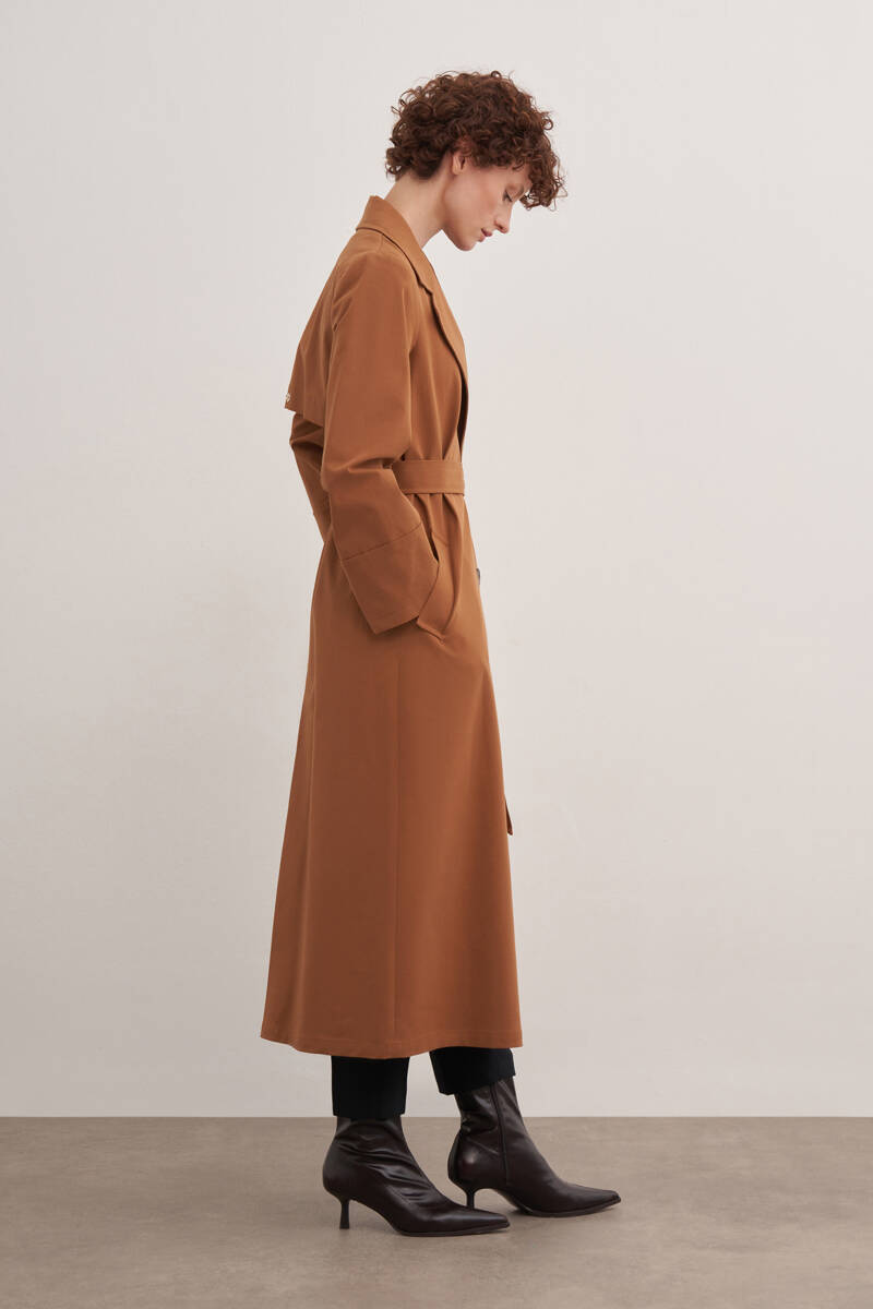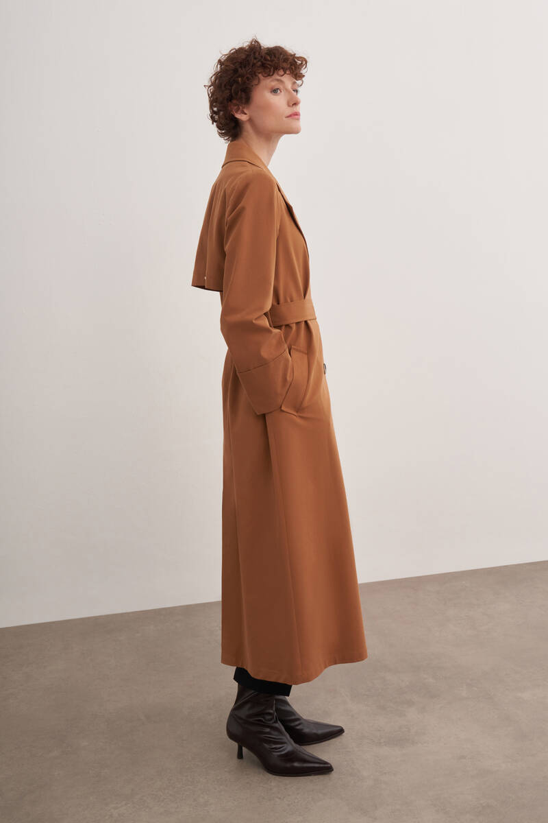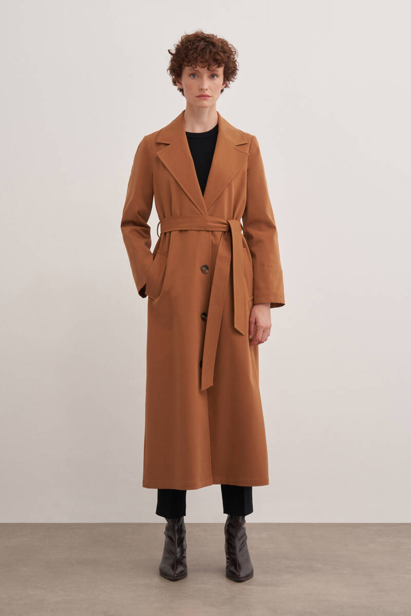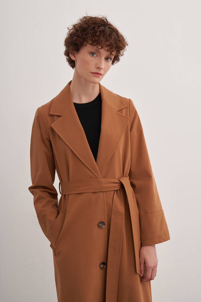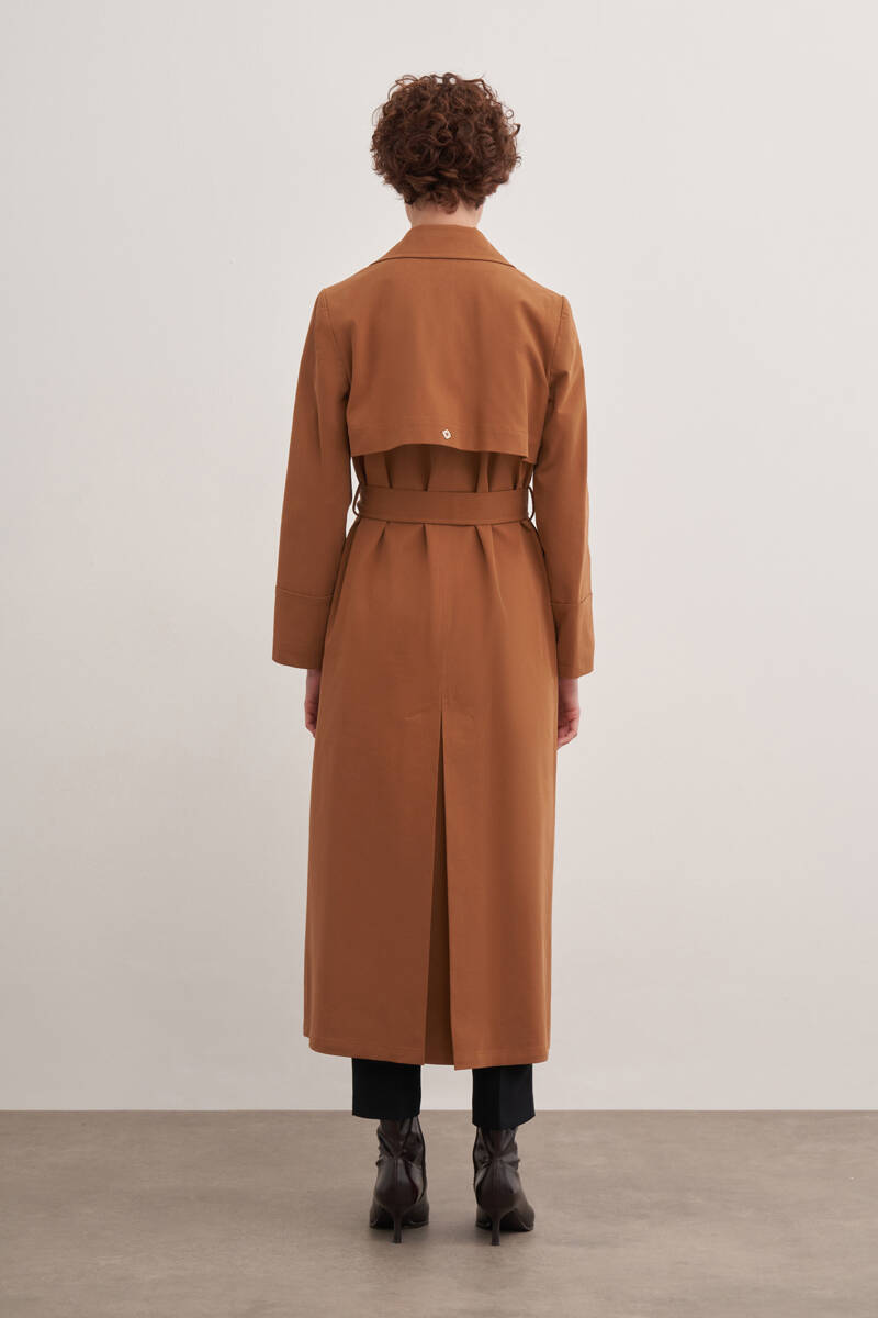 Bej Yanları Yırtmaçlı Keten Pardösü