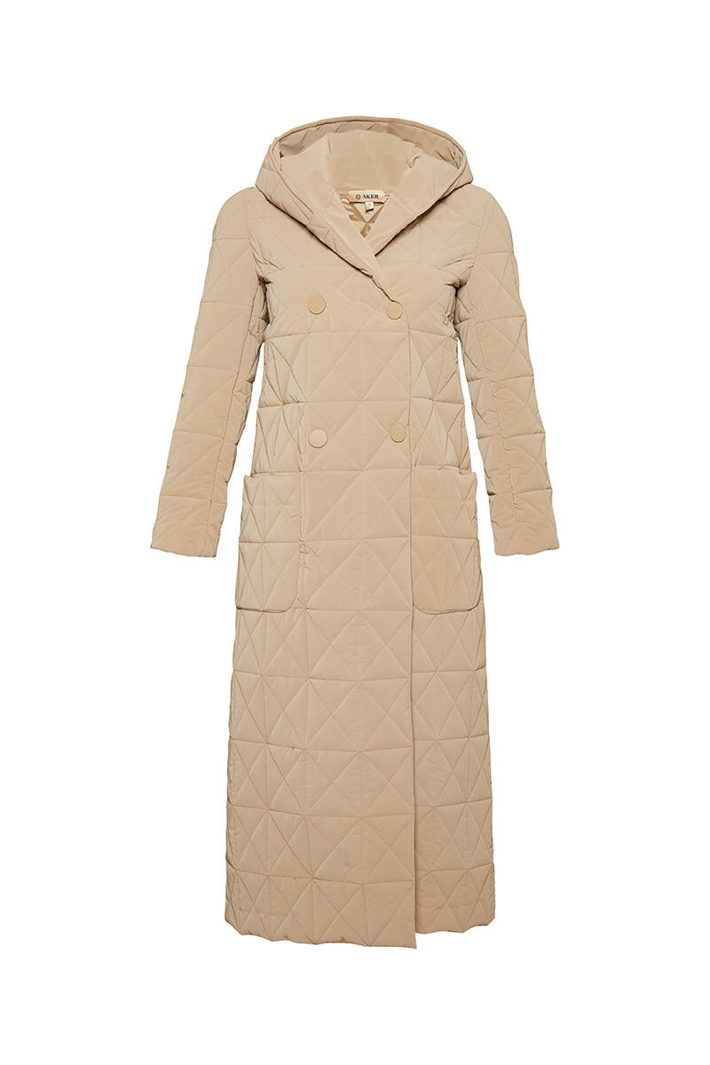 Kahverengi Seyyar Kuşaklı Kapitone Mont