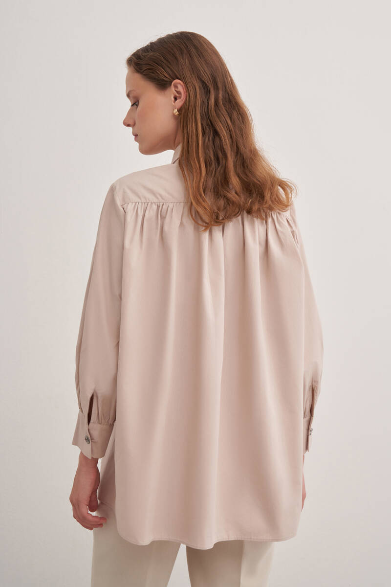 Ekru Omuzları Büzgü Detaylı Dokuma Kolsuz Bluz