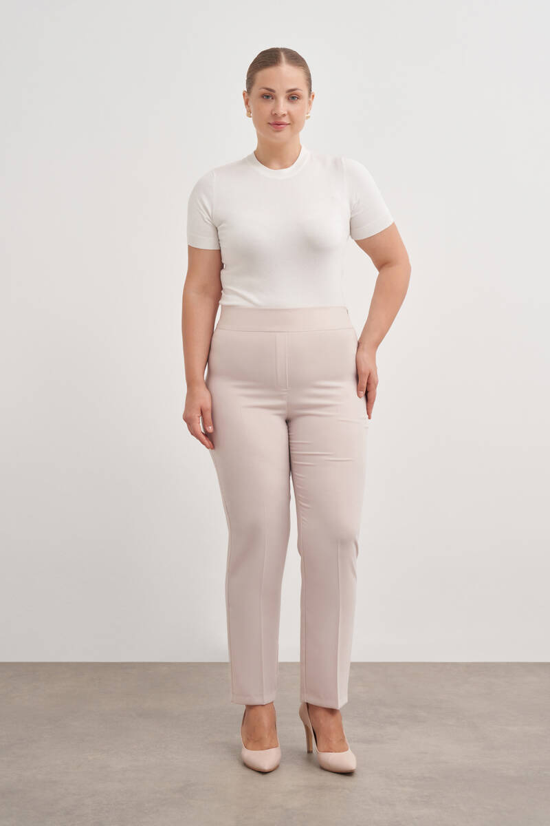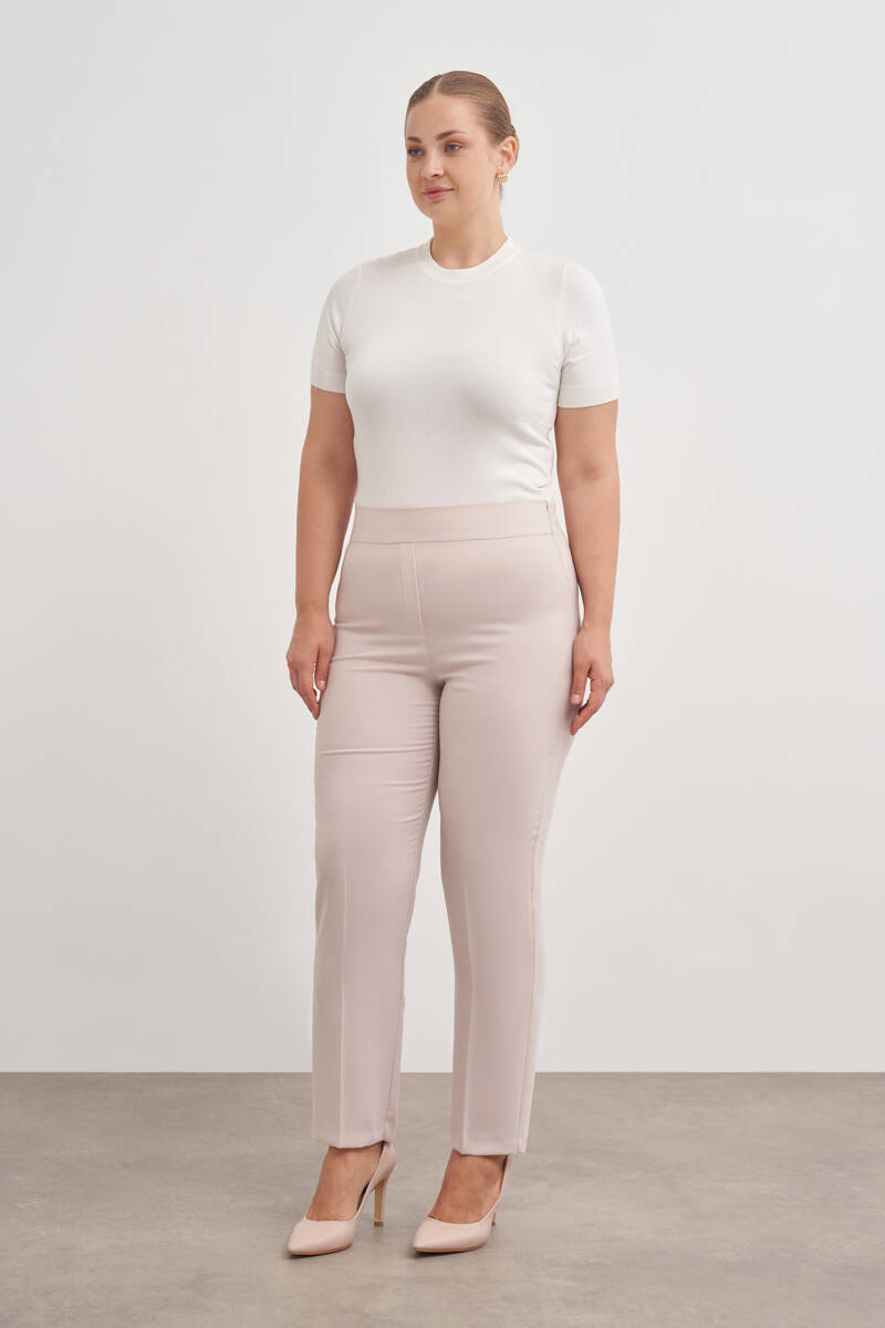 Ekru Beli Lastikli Dokuma Pantolon