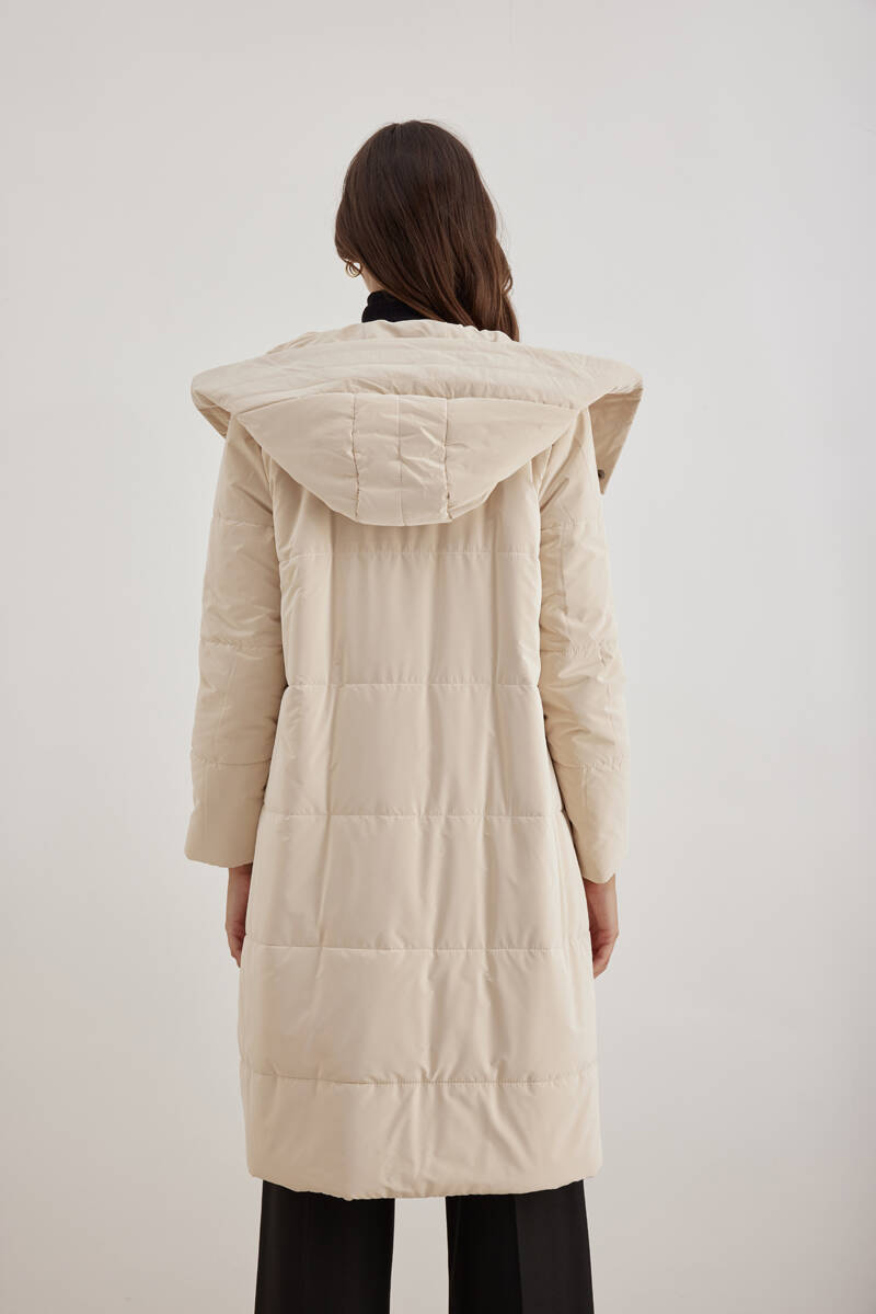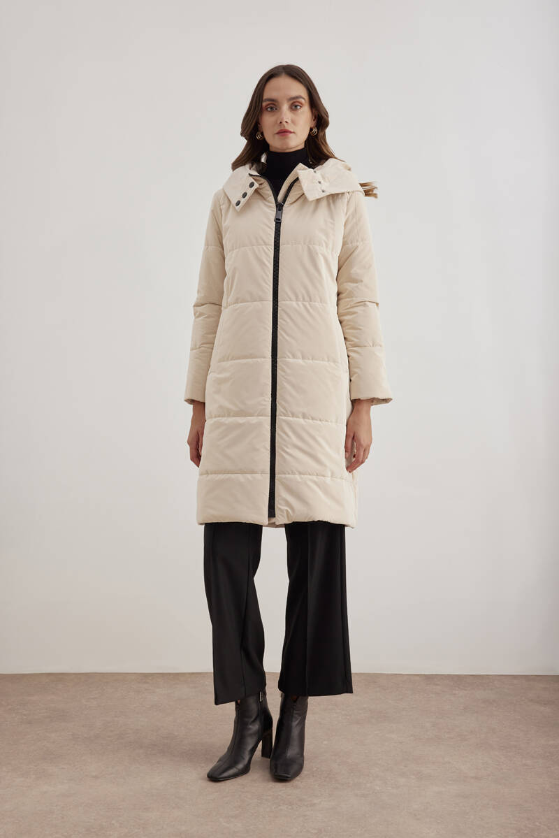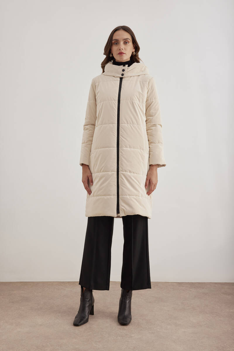 Bej 5829111 Yaka Detaylı Kapitone Kısa Mont