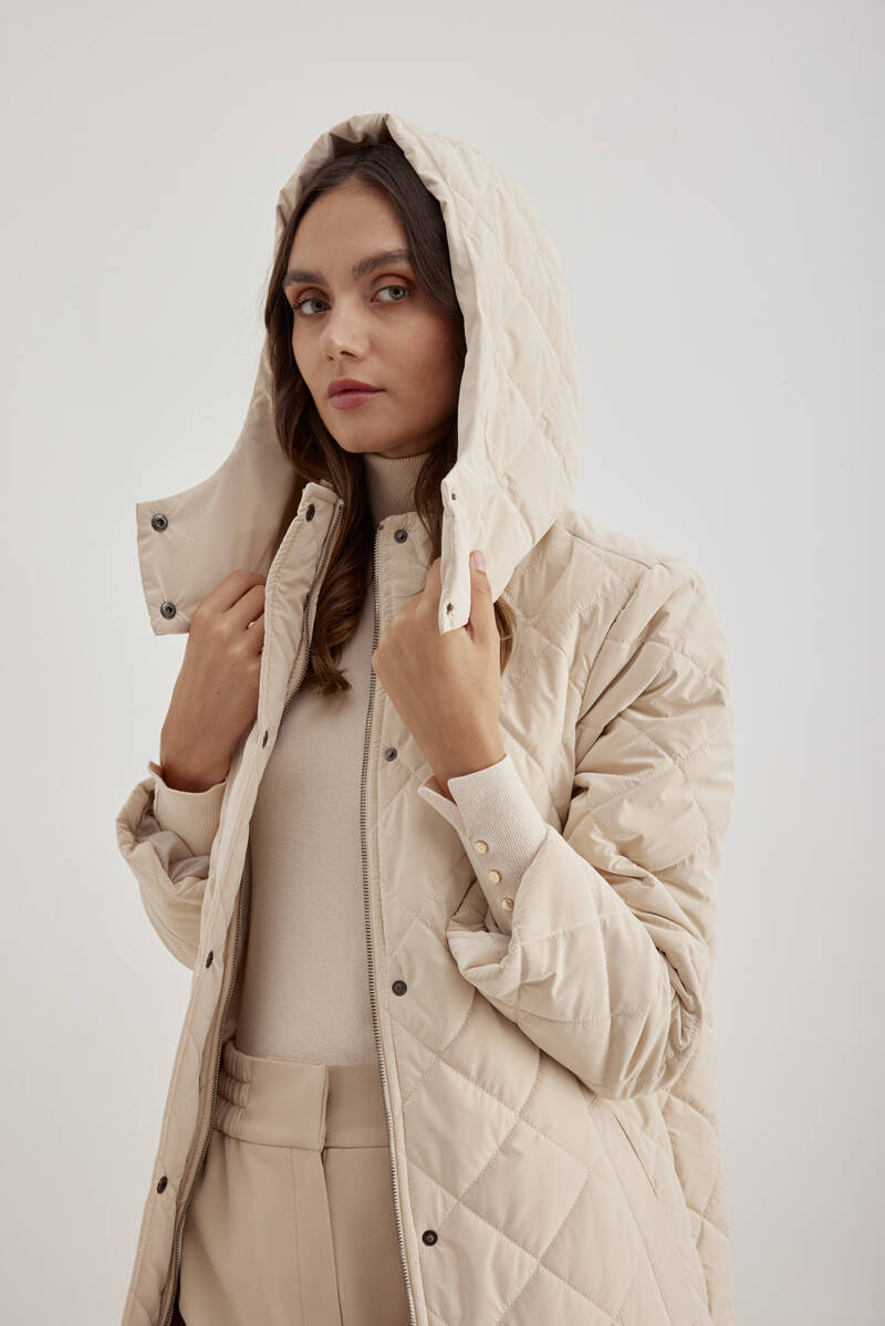 Bej 5829111 Yaka Detaylı Kapitone Kısa Mont