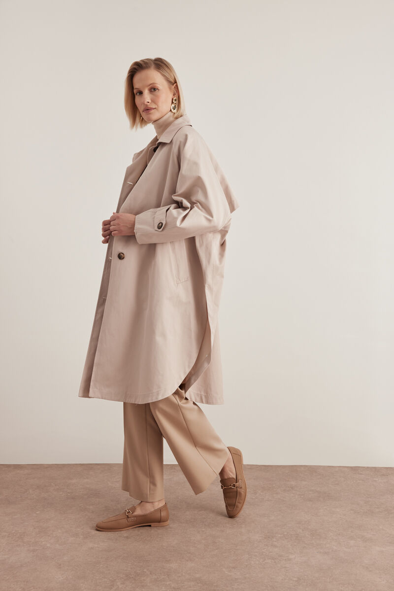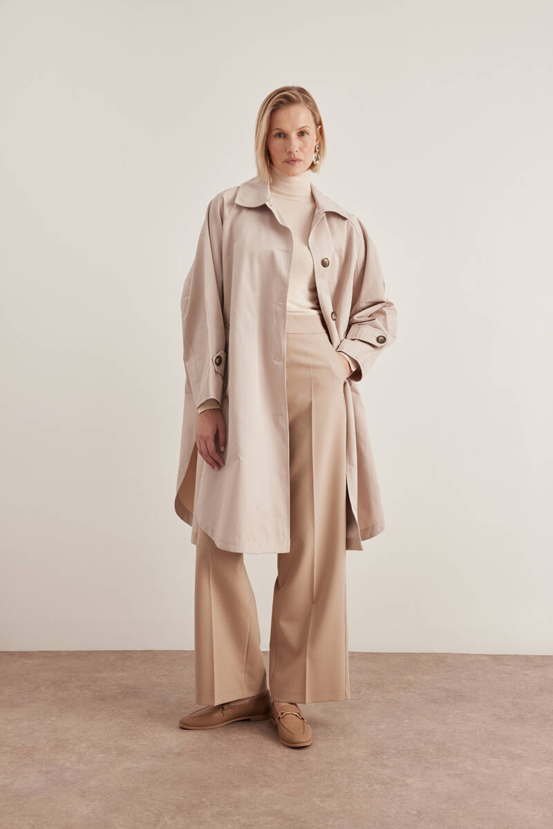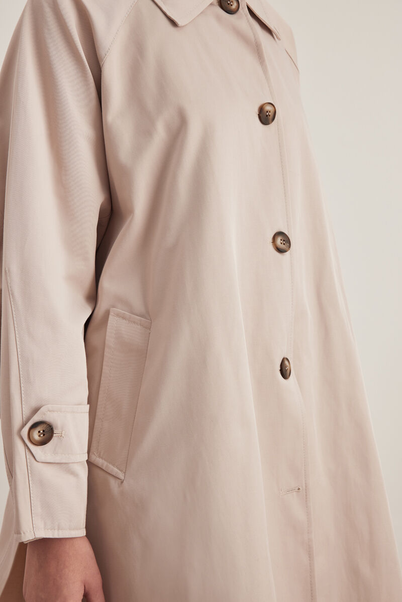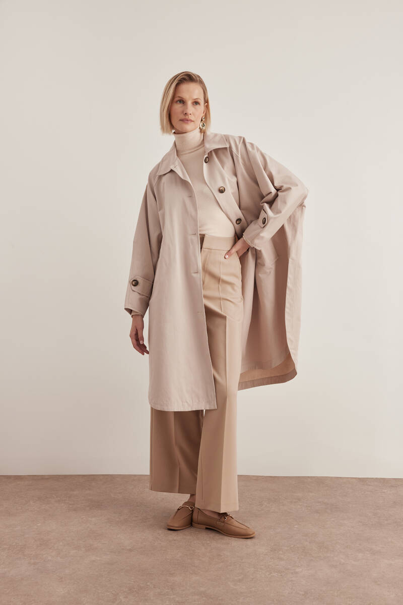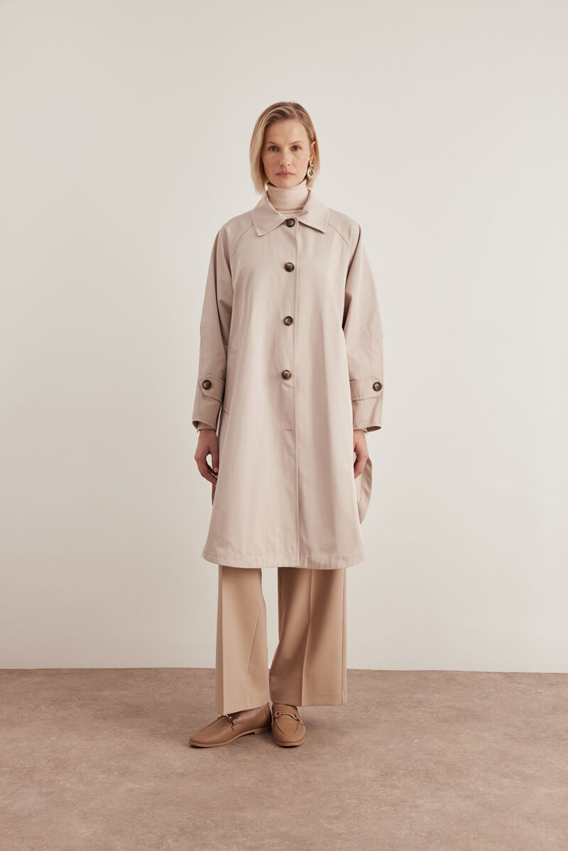 Bej Keten Karışımlı Dokuma Trençkot