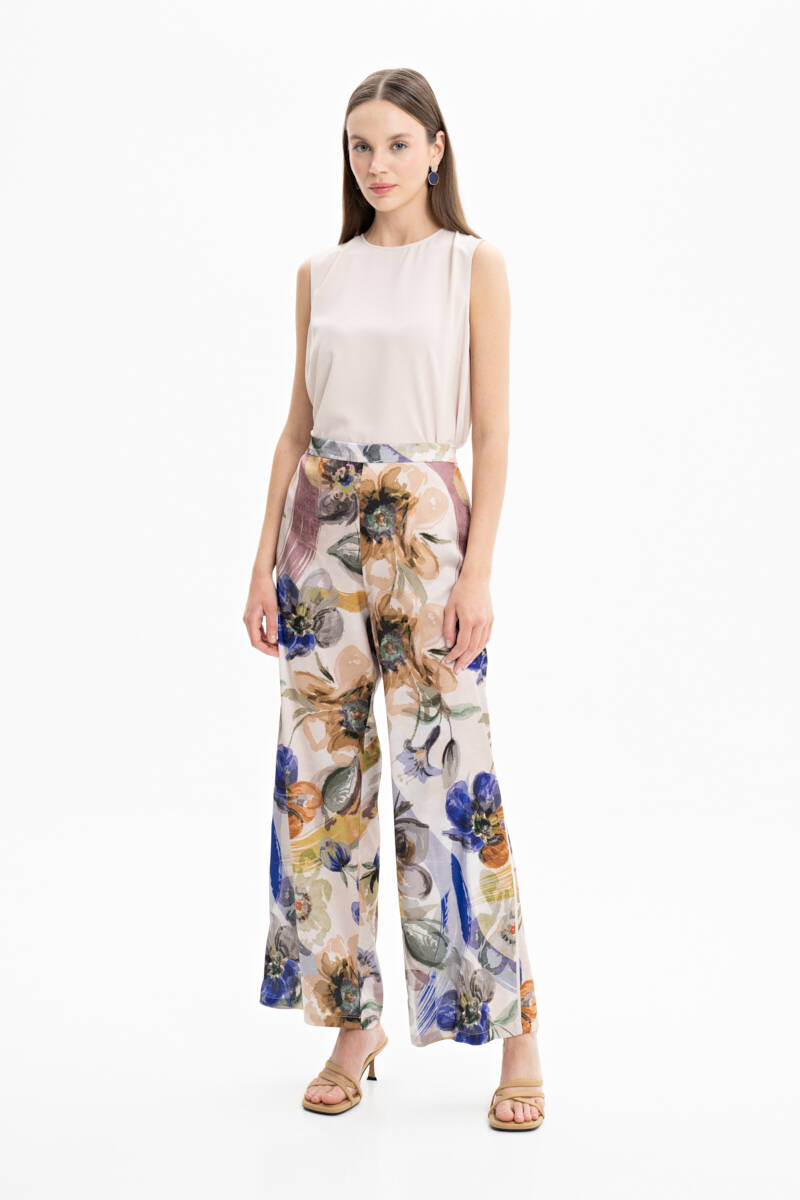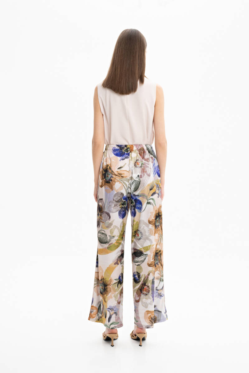 Taş Arka Bel Lastikli Desenli Pantolon