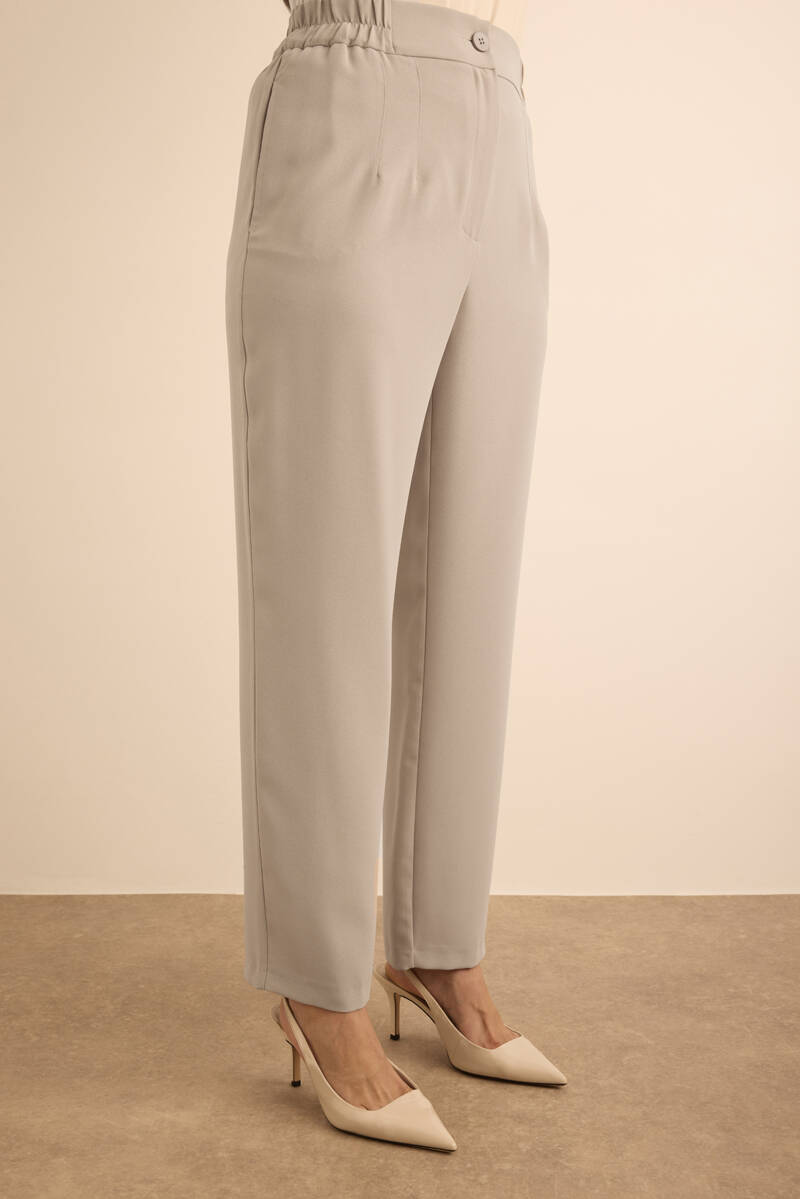 Taş Beli Lastikli Dokuma Pantolon