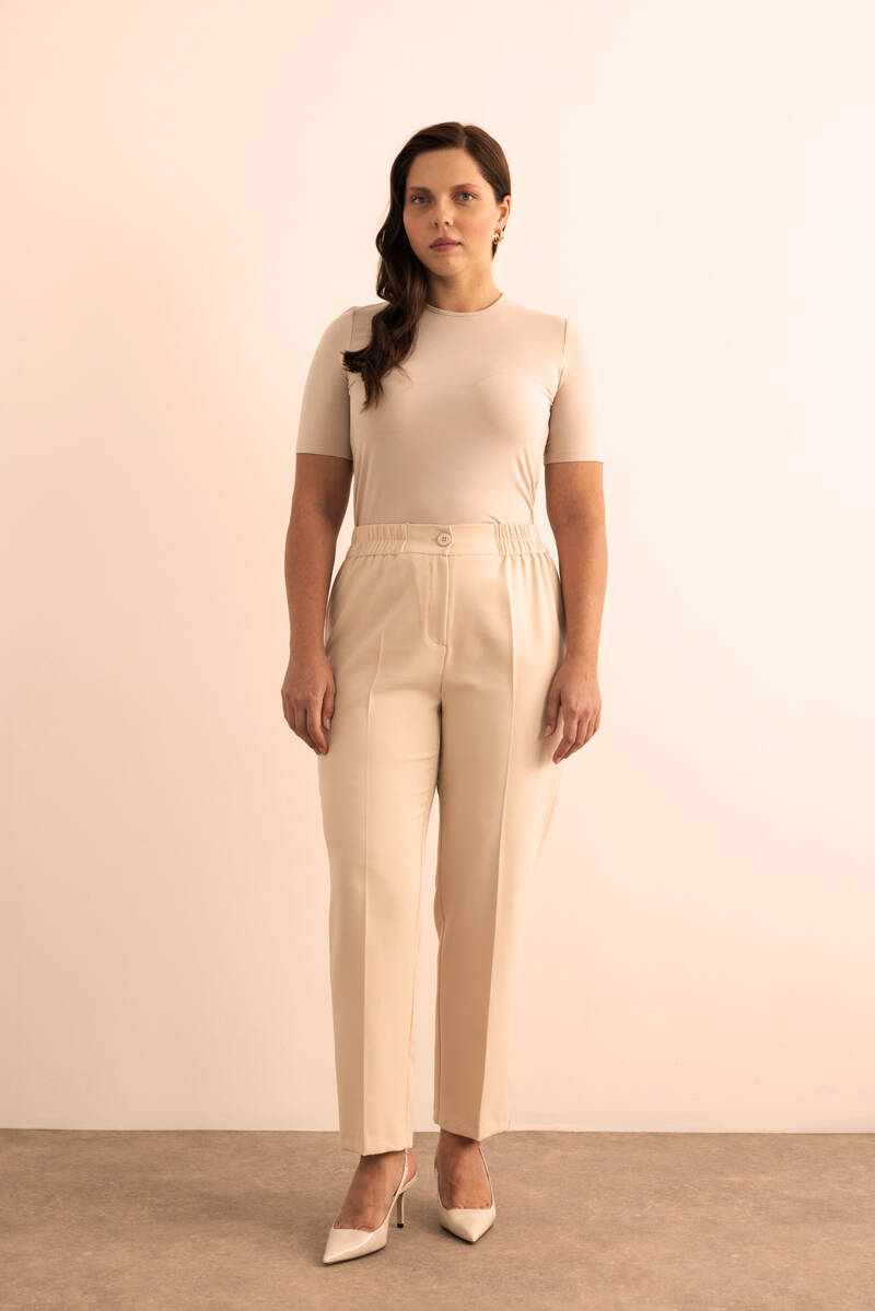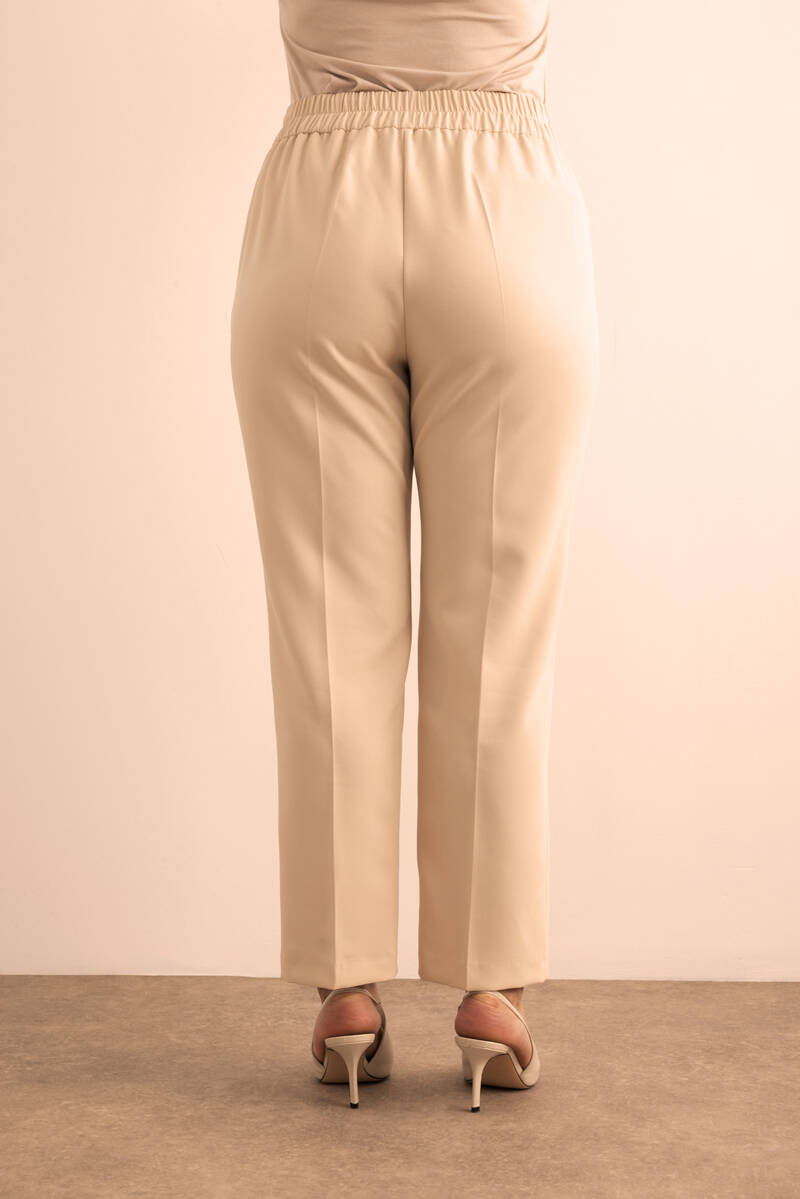Vizon Beli Lastikli Keten Pantolon