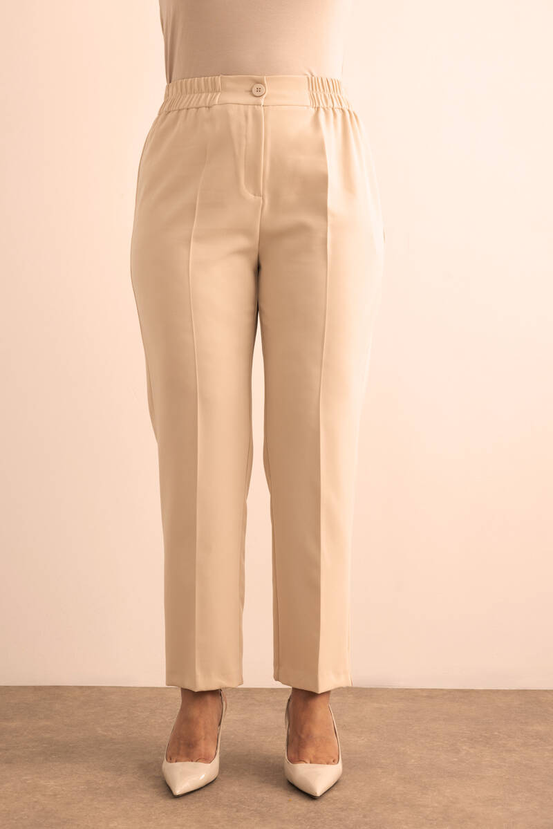 Ekru Beli Lastikli Dokuma Pantolon